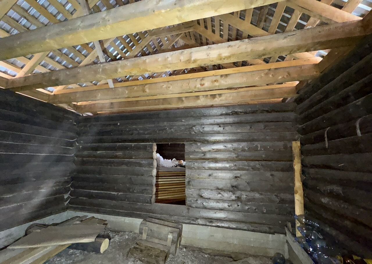 ️ На участке стоит сруб-пятистенок 2019 года постройки на монолитном ленточном фундаменте из бревна 200-220 мм. Размер каждого помещения (их два) 5.3х5.3м. Внутренняя площадь 56 квадратов. Пол отсутствует (сейчас открытый грунт). Высота от верха фундамента до низа балок чердачного перекрытия 2,6м. Высота чердака в коньке 2.68м, высота до затяжки стропил 1,92м. Балки чердачного перекрытия - брус 180х150 - с шагом 700мм. Стропила - доска 150х50 - с шагом 700мм. Дополнительно отдам 60 досок 50х150 (2.5 куба) для конструкций пола и большой мешок пакли для швов сруба.