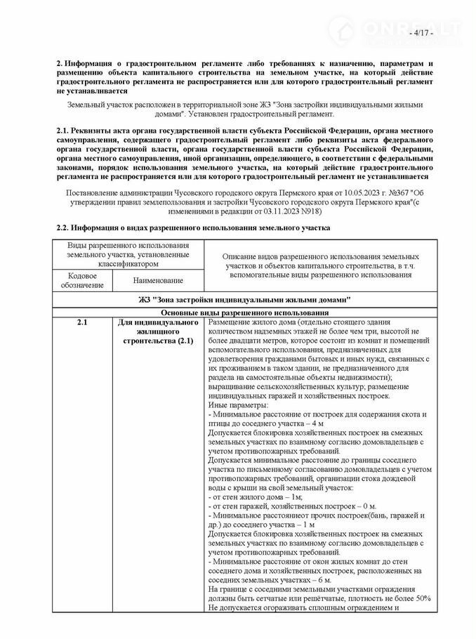 Категории земель: "Земли поселений (земли населенных пунктов)" с разрешенным использованием "Индивидуальные жилые дома с приусадебными земельными участками". Участок расположен в зоне Ж3 "Зона застройки индивидуальными жилыми домами".