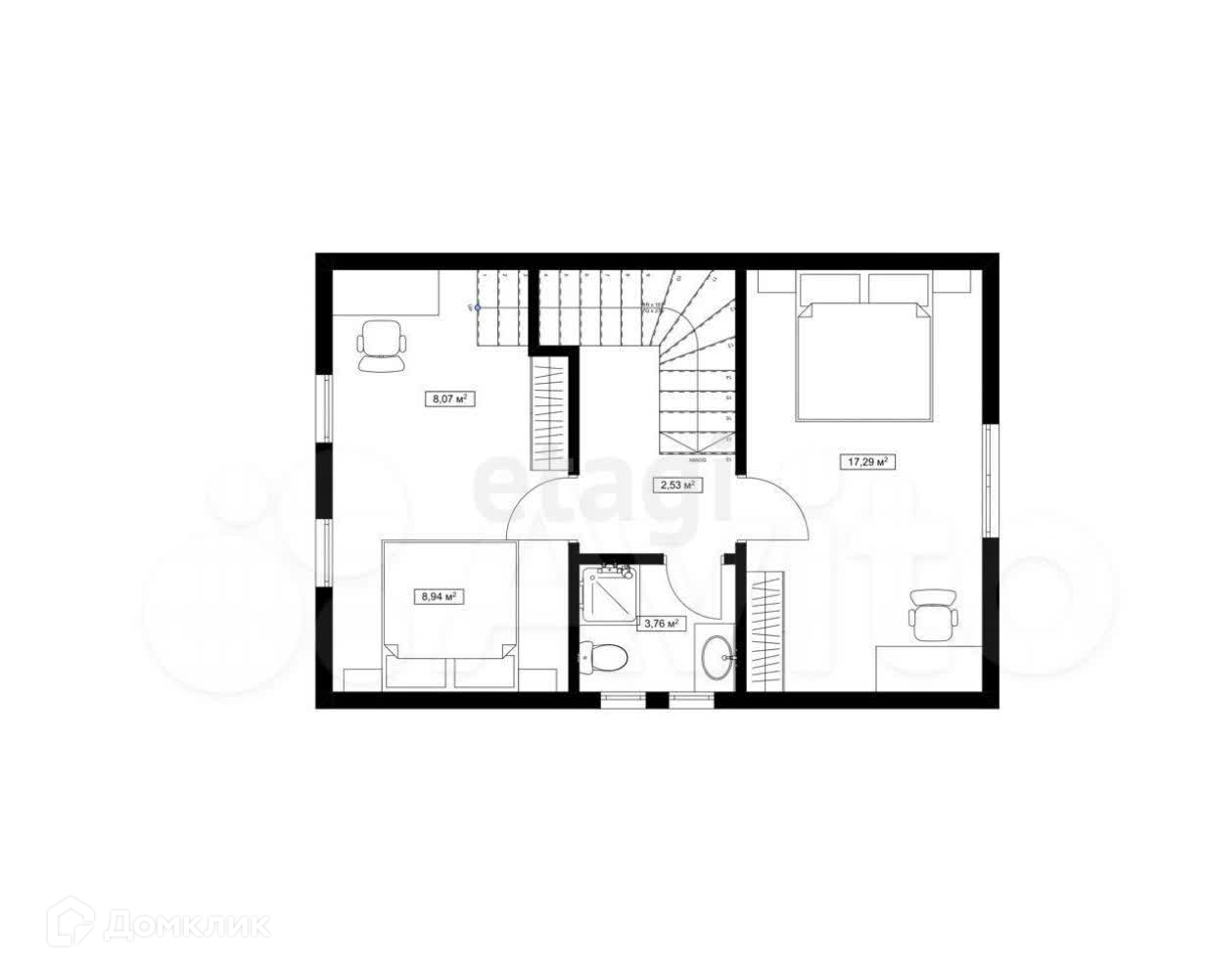 Планировка дома включает в себя просторную кухню-гостиную 25.5 кв.м, выход на террасу, 3 полноценные спальные комнаты 11/17/17, гардеробную и большой санузел.