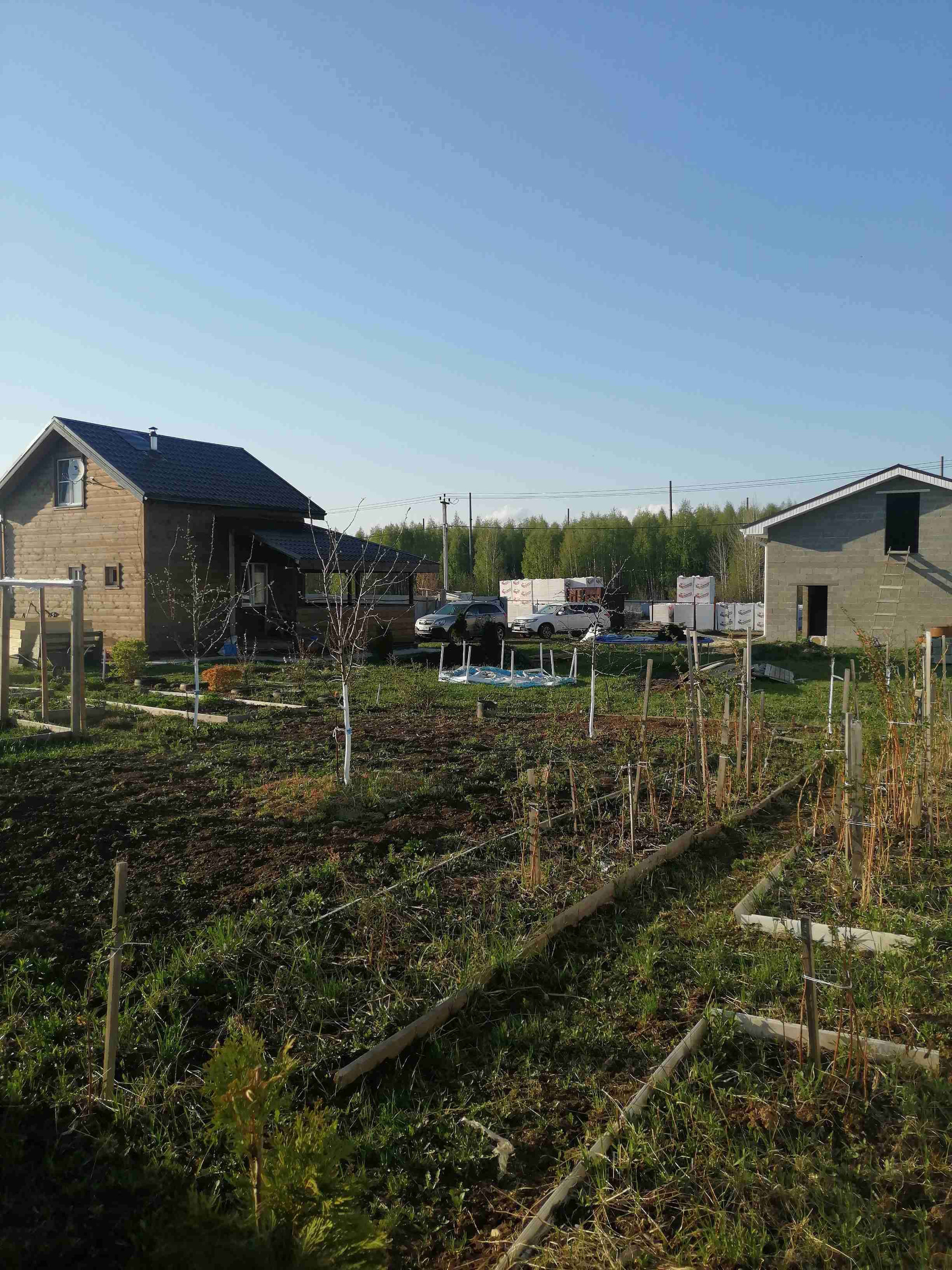 На территории данного земельного участка имеется гараж на две машины, Свайно-ростверковый фундамент, перекрытие деревянное, хозяйственное помещение с отдельным выходом на участок и второй этаж свободной планировки (для использования вам понадобиться только установить ворота и окна, готовность 85%).