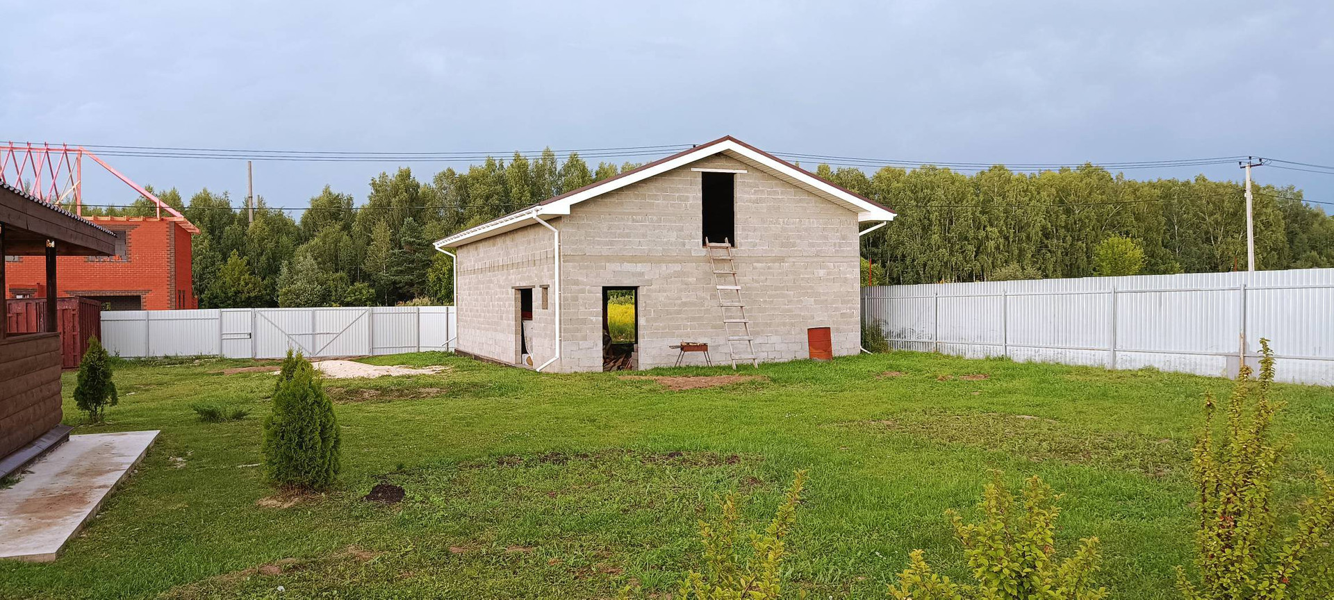 На территории так же имеется двух этажная постройка 280м2. Назначение гараж на два авто., остальная площадь свободного назначения,готовность 70%.