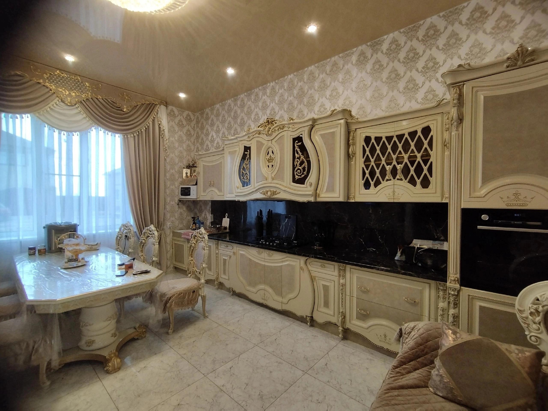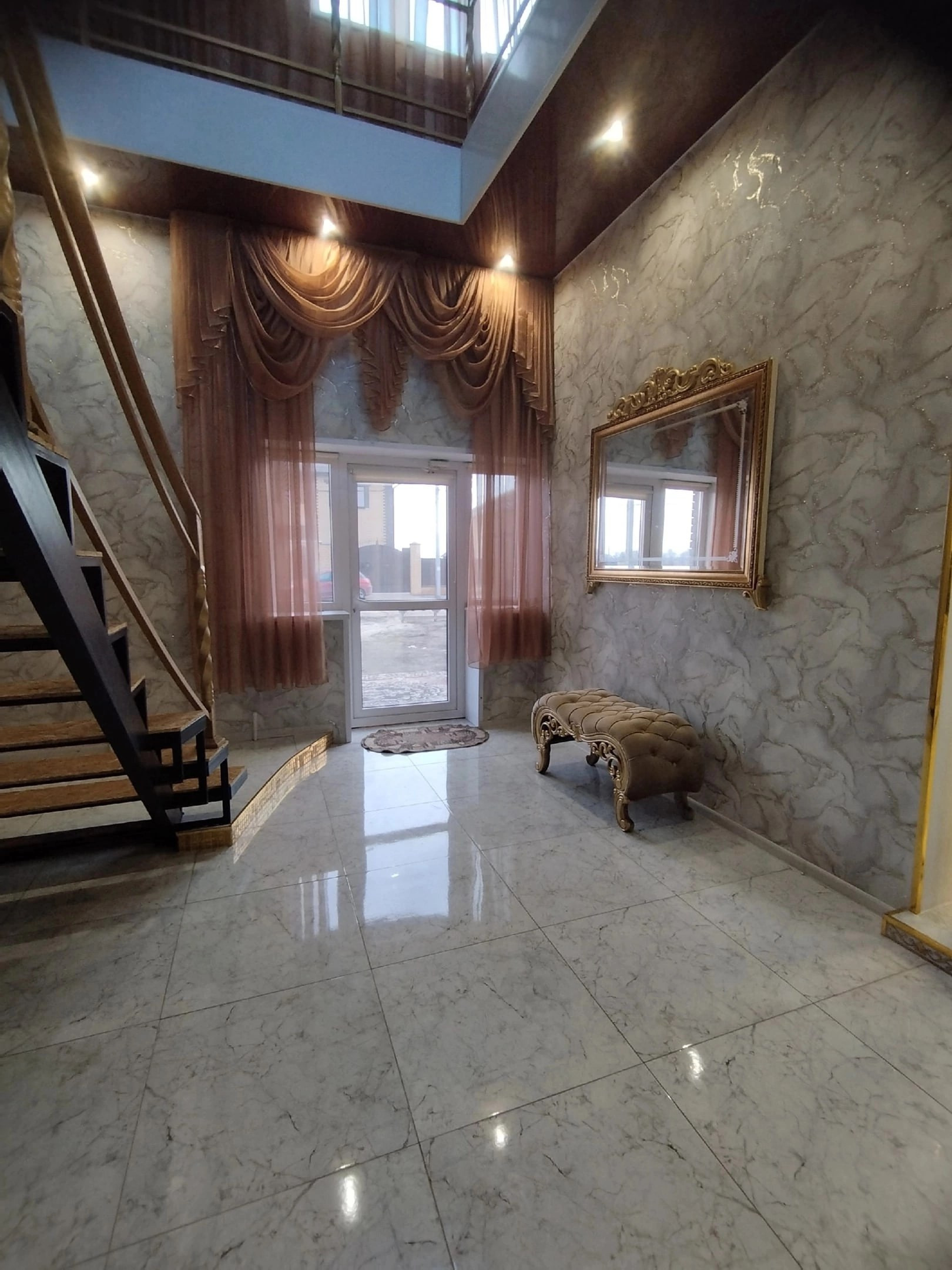 Установленные дорогие двери. Натяжные потолки по всему дому.