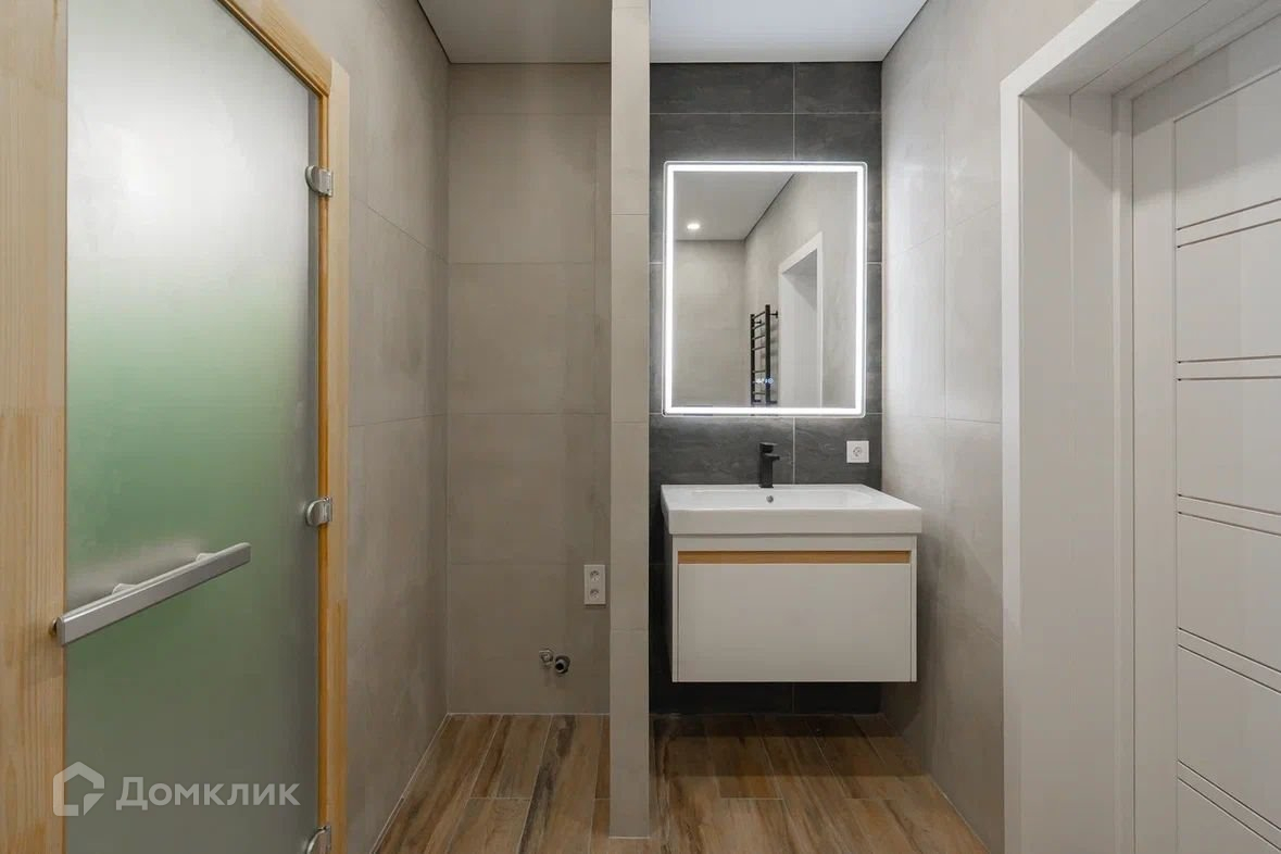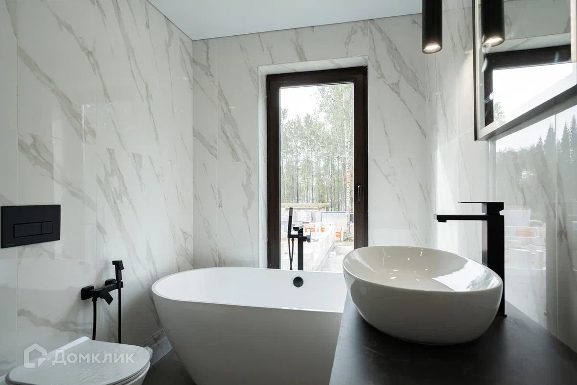 Широкоформатный керамогранит, стены комбо - ровные в сочетании отшлифованного планкена! Актуальные оттенки серого! Потолки с теневым профилем. Ламинат 33 категории! Фаянс Керамо Марацци, отдельно-стоящая ванна у панорамного окна, сауна.