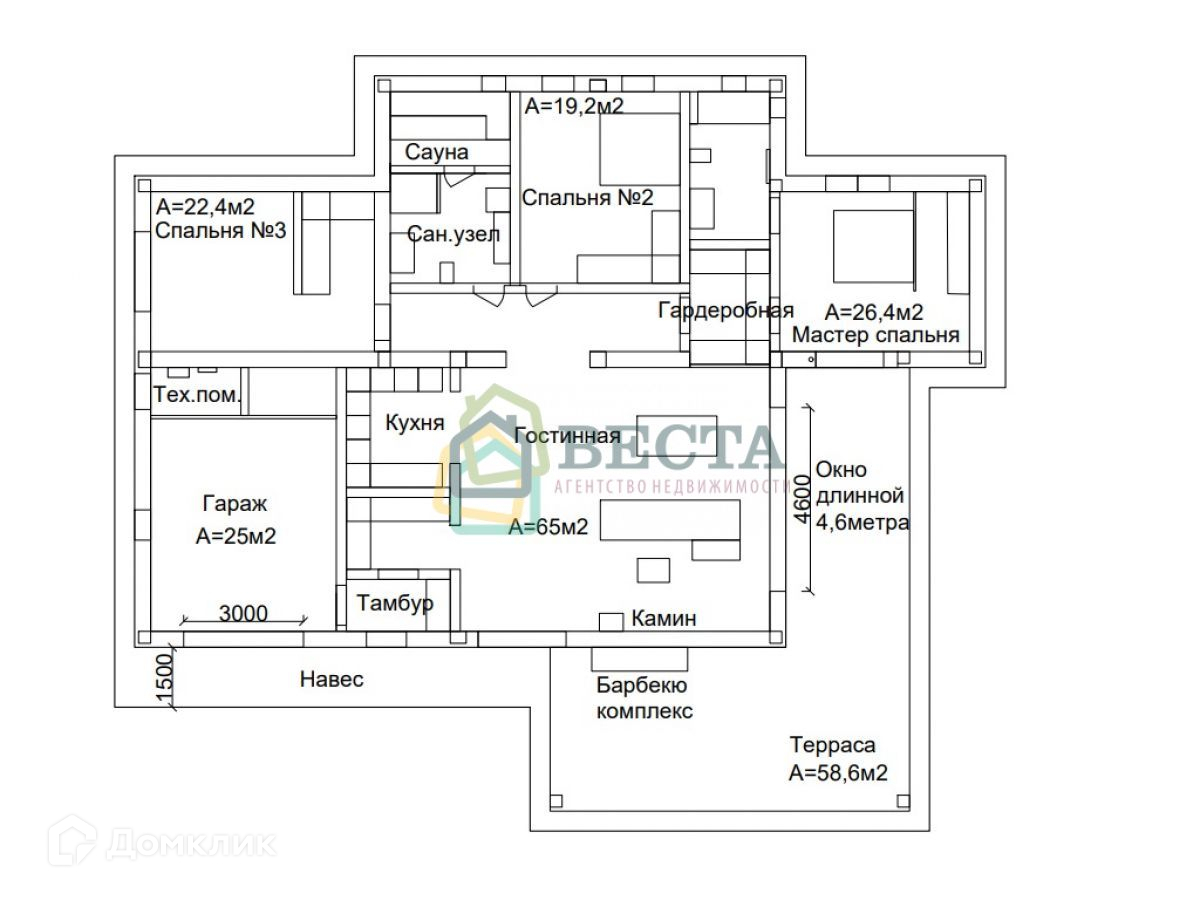 которых в мастер-спальне), сауна, гараж, терраса с зоной барбекю
