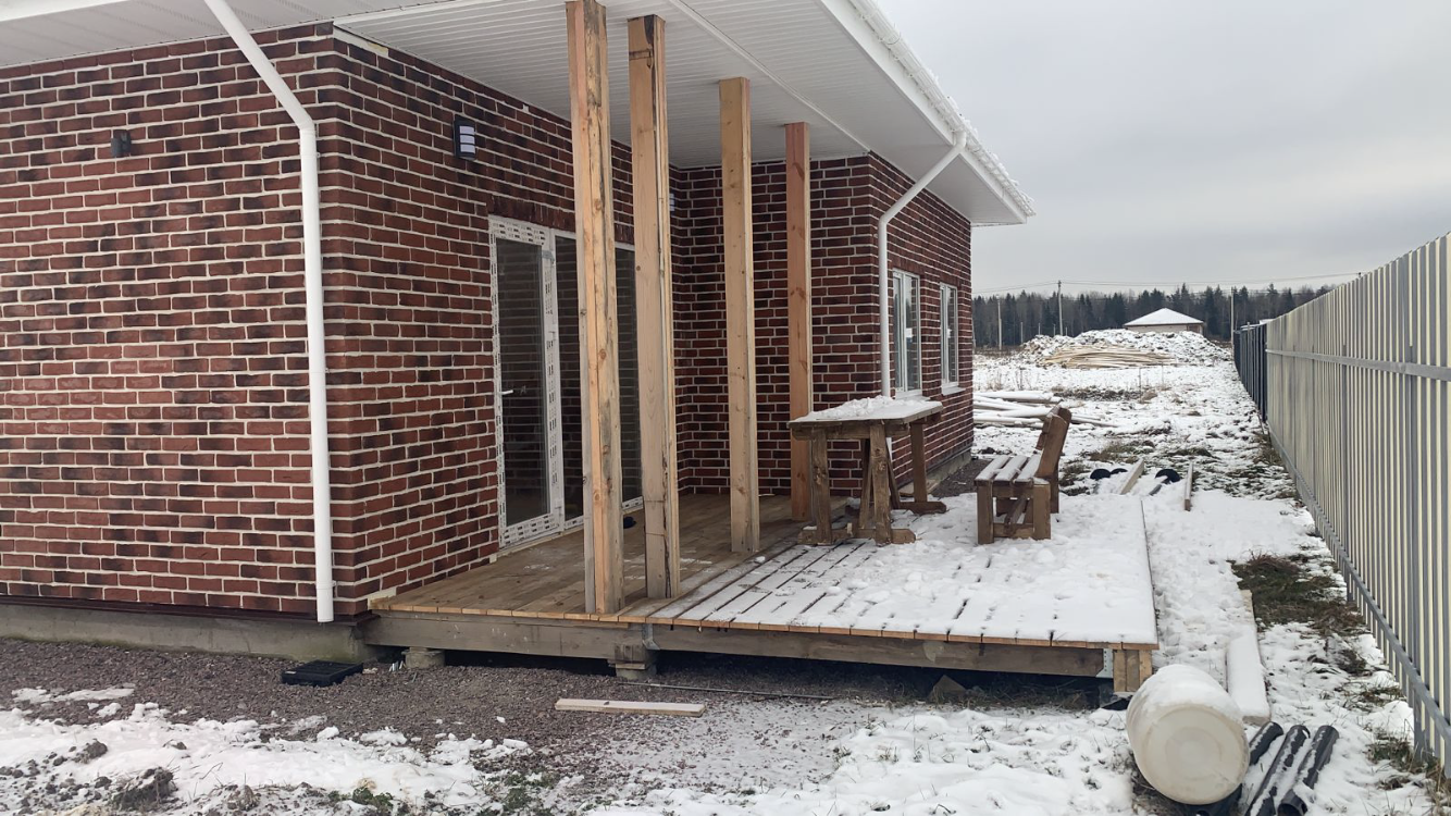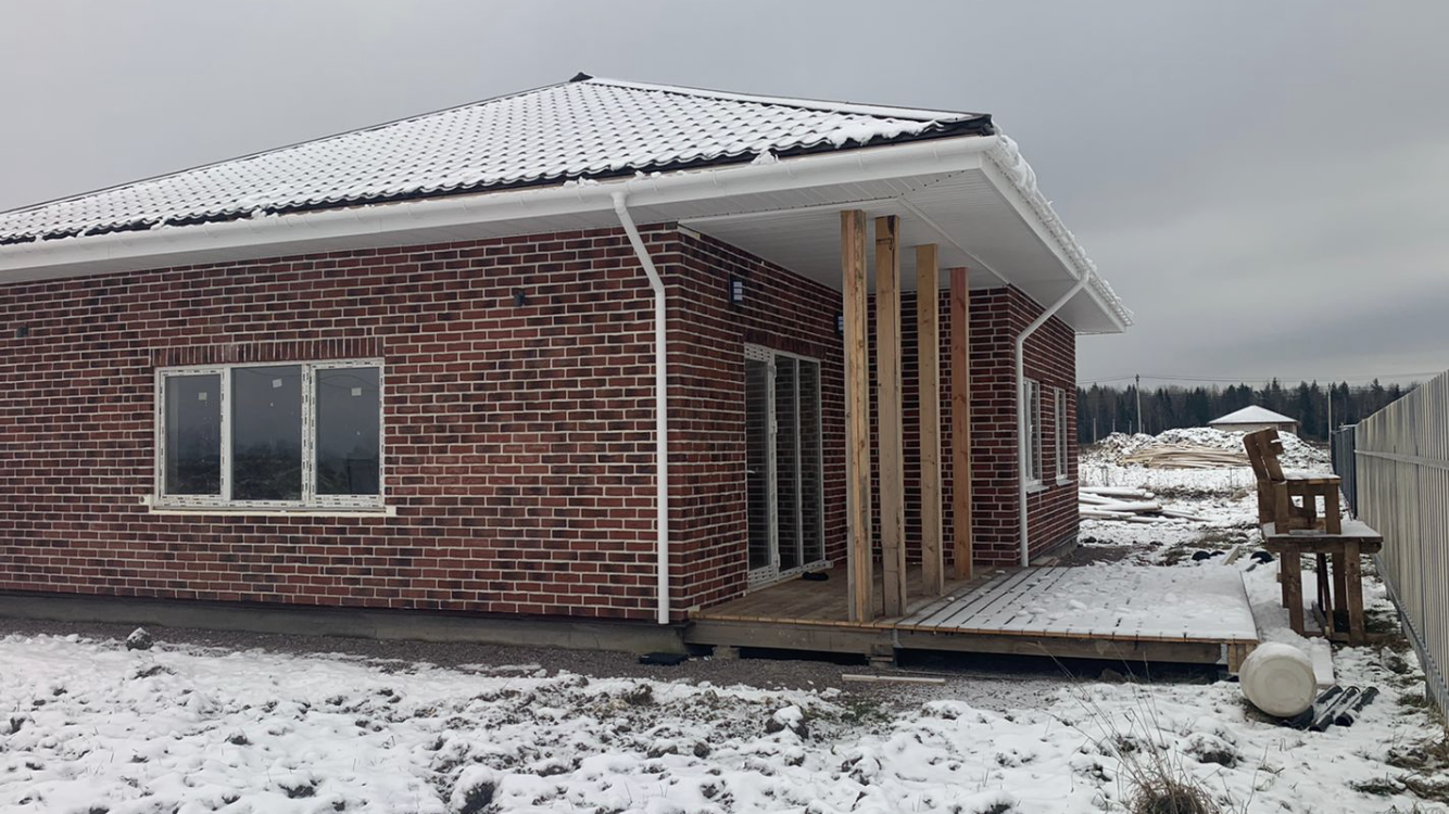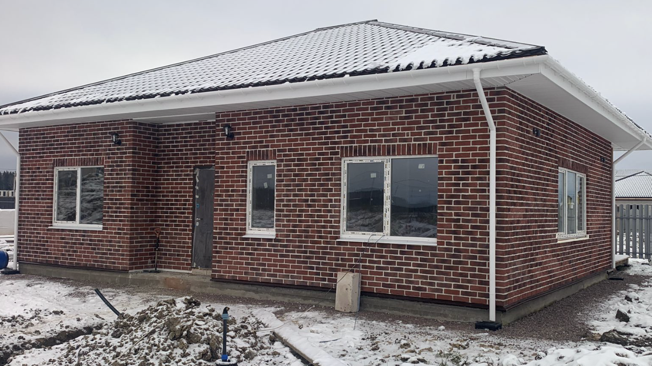 Здравствуйте , продается одноэтажный дом 102 м кв из газобетона на фундаменте монолитная плита . Дом находится в коттеджном поселке ДНП «Ижорец» в 20 км от КАД .