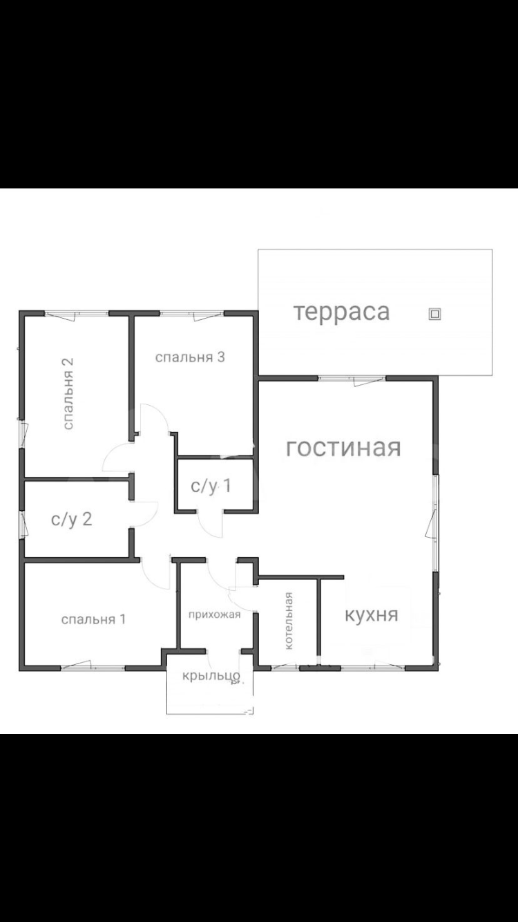 Дом имеет 3 спальни и гостиную - кухню  , 2 санузла