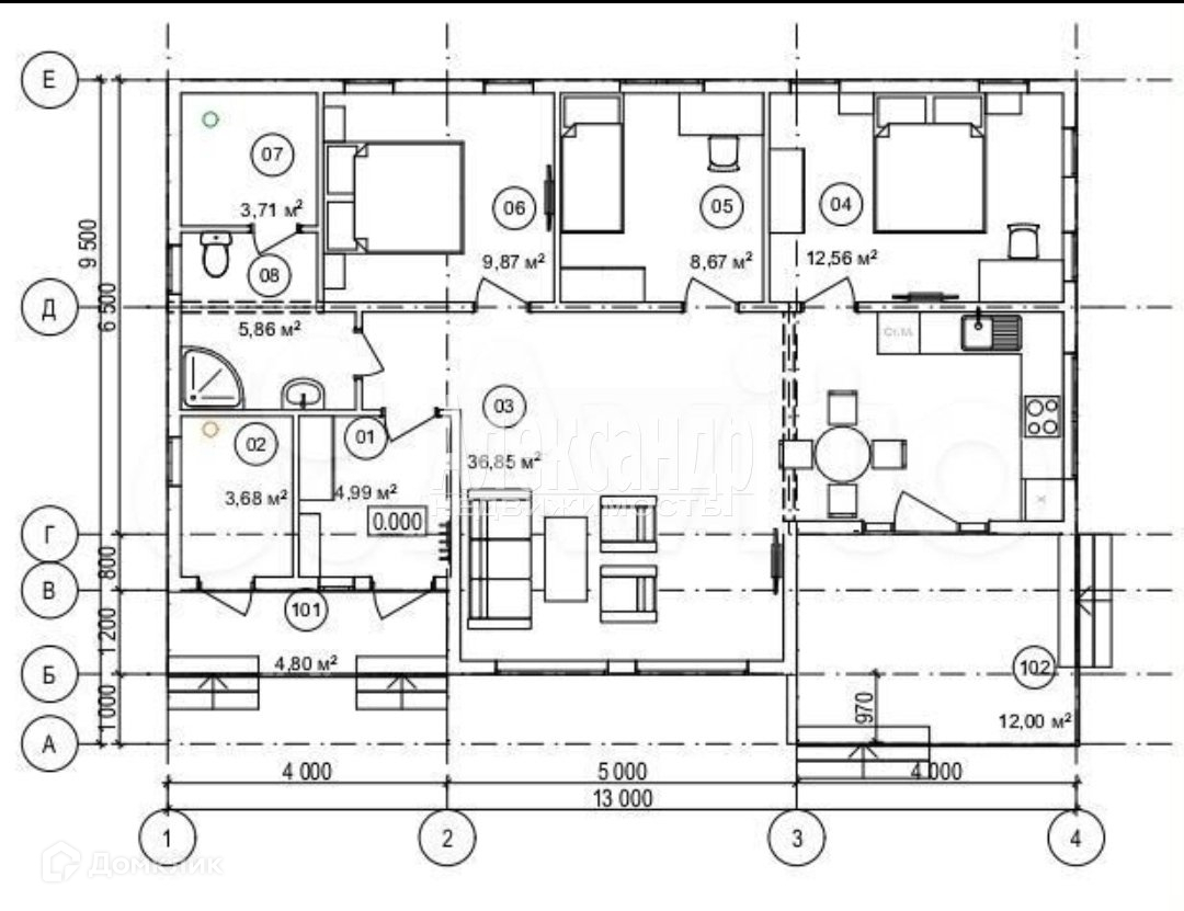 Общая площадь 96 м2