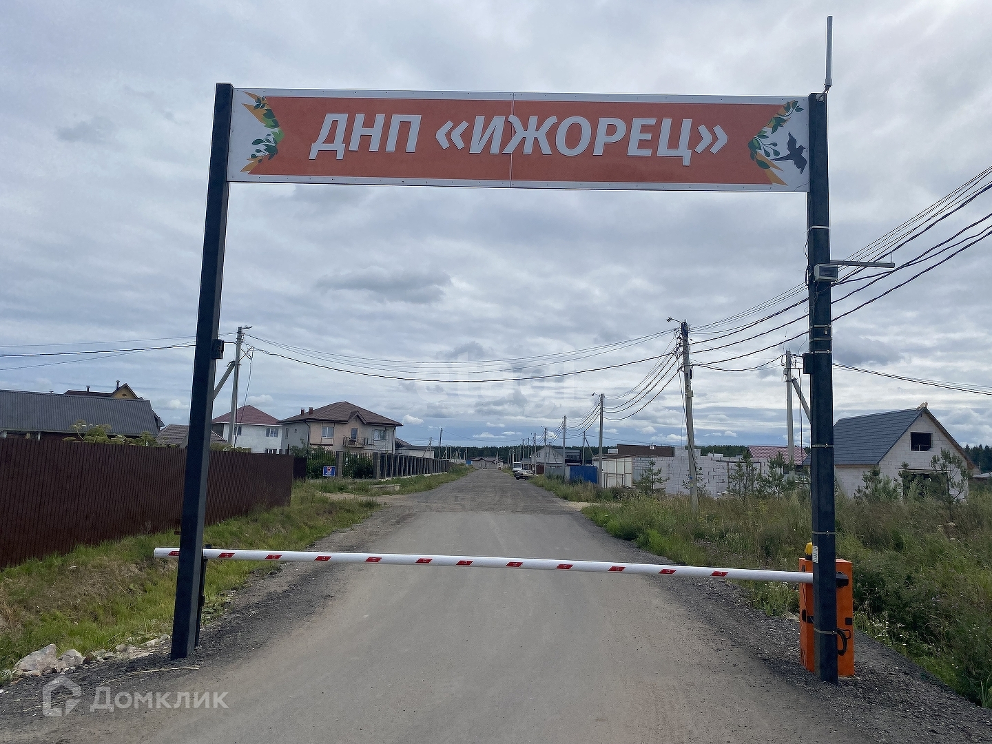Въезд в ДНП Ижорец через шлагбаум (что исключает проезд лишнего транспорта).