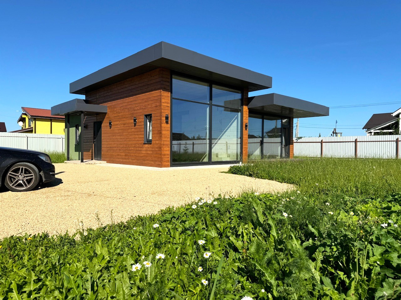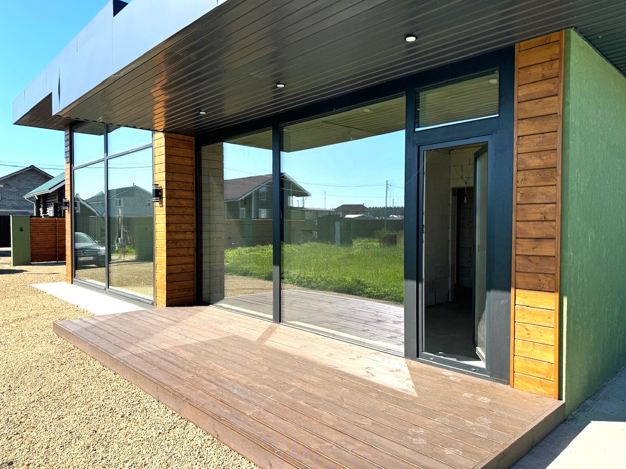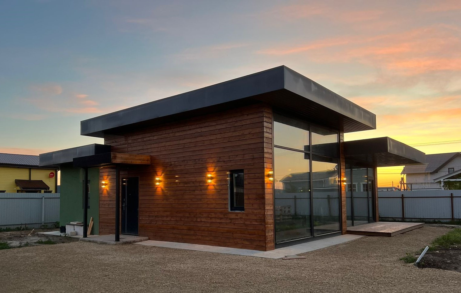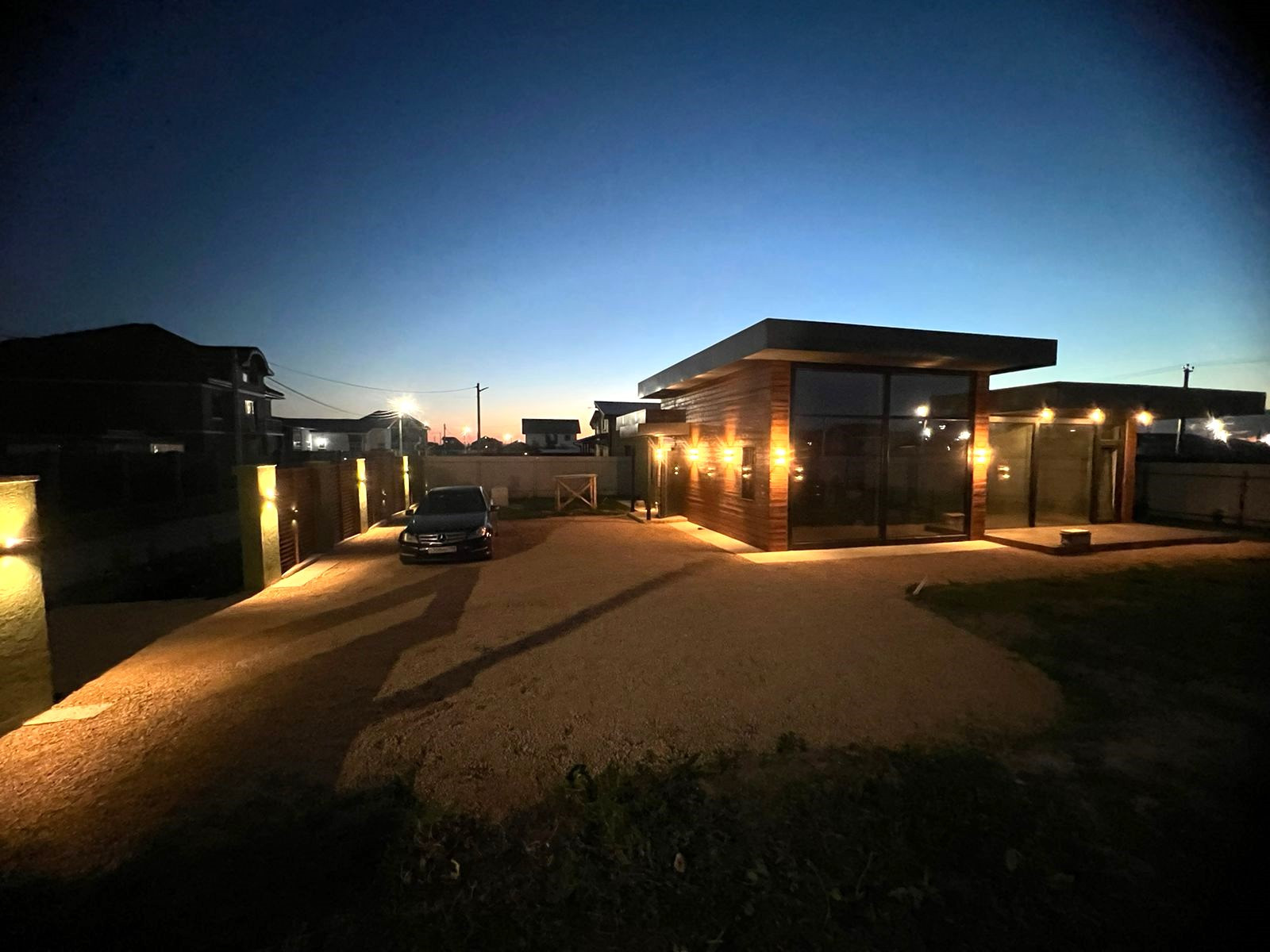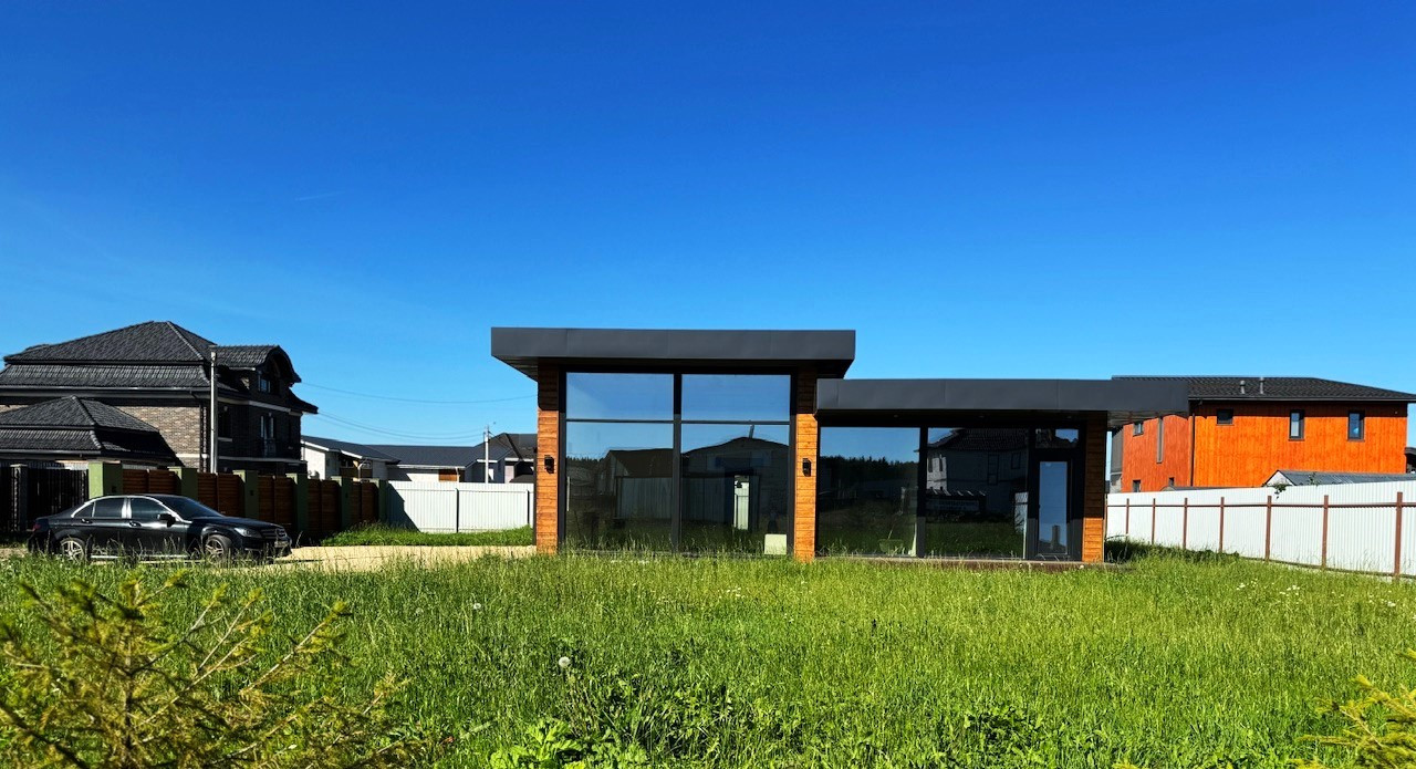 Продается стильный одноэтажный дом с дизайнерским остеклением и освещением.