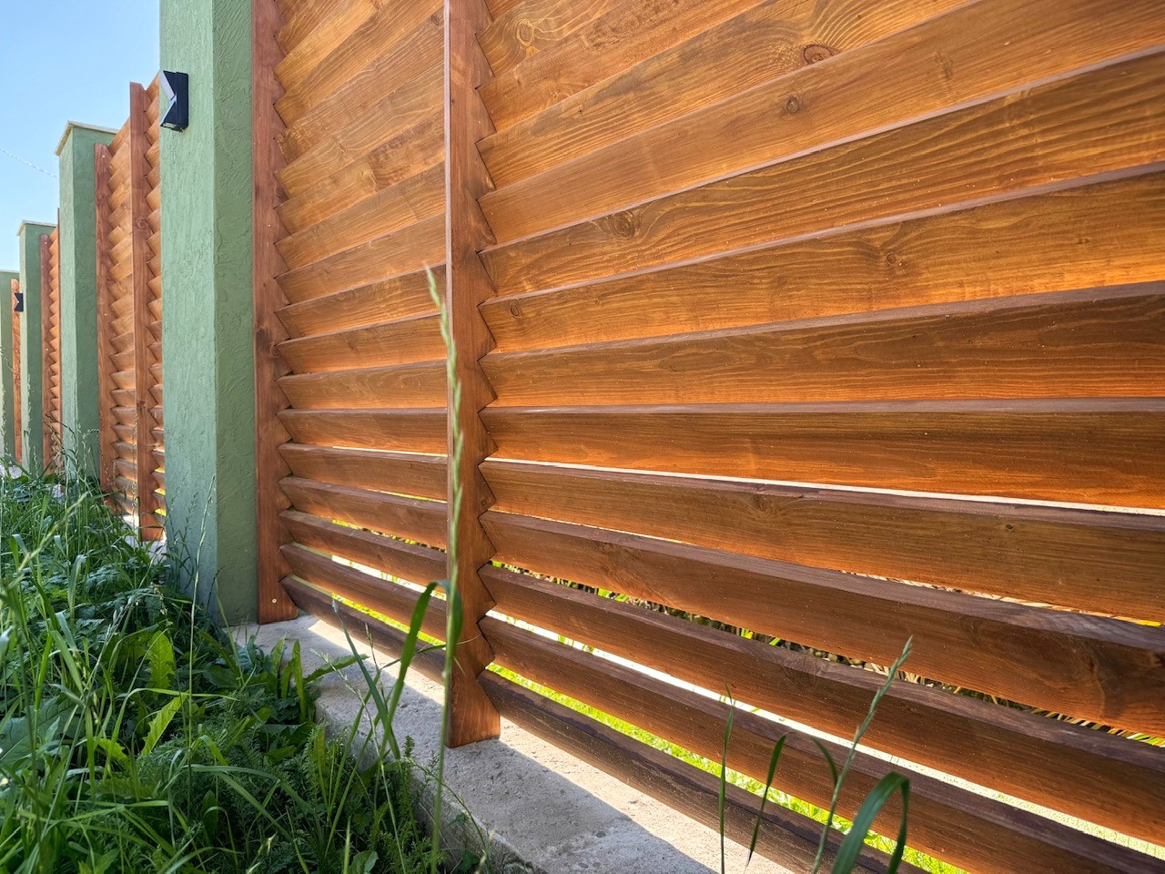 Фасад: Элегантная декоративная штукатурка в сочетании с дизайнерской отделкой из натурального дерева придает дому неповторимый стиль.