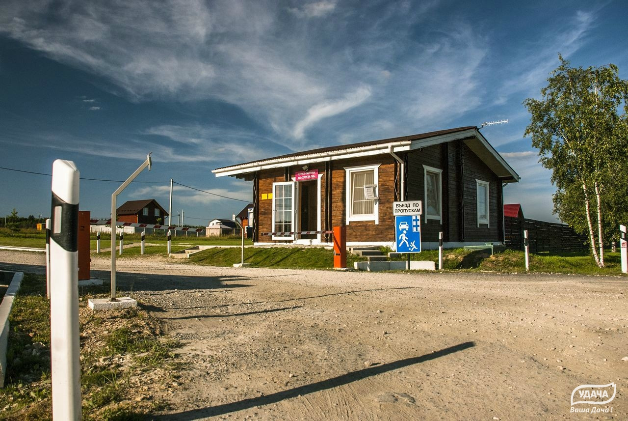 Выезд на участки через КПП с использованием электронного ключа. Круглогодичный проезд к участку. Территория благоустроена: есть две детские площадки (на одной летом устанавливают батут), также недалеко от дома выход на пруд с чистой водой и возможностью рыбалки. Поселок находится в окружении лесов, прекрасная экология, грибы, ягоды.