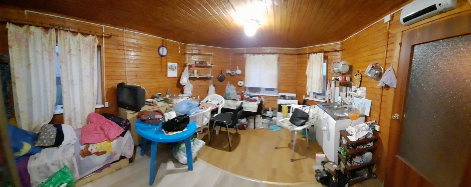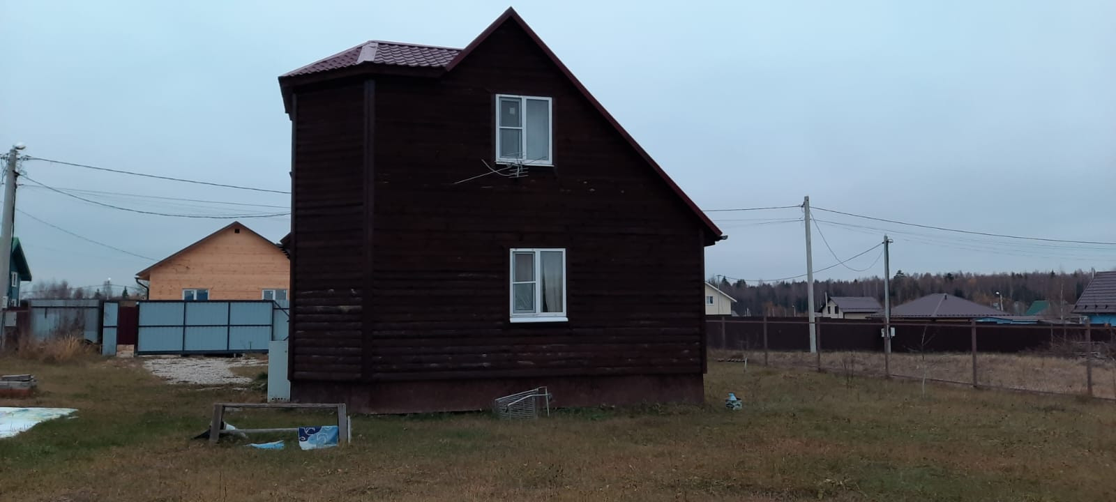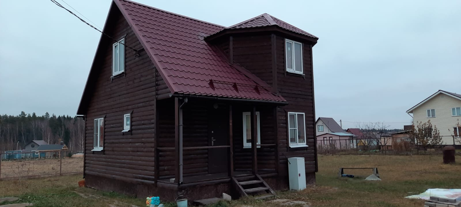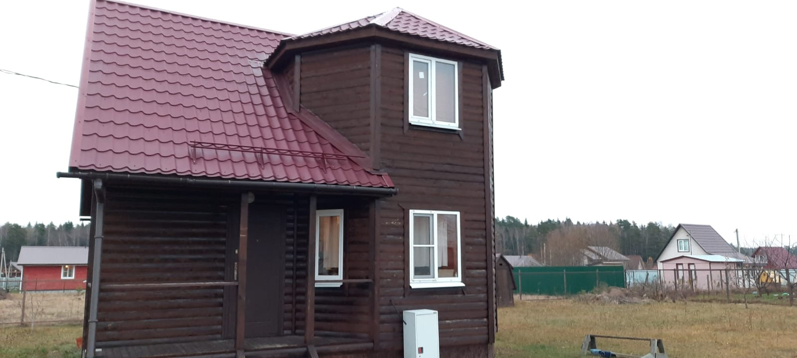 Дом очень теплый  построен по каркасной технологии (зимняя комплектация) с дополнительной ветро -защитой. Снаружи отделан блок-хаусом, внутри отделан вагонкой. Проведена огне-био-защитная обработ-бак), горячая вода (установлен бойлер). Разведены на туалет и кухню. Электричество на дом 11 квт. Есть газовая плита, подключенная к баллону. Отопление электрическое.