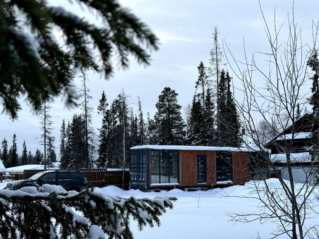 По периметру участка и в самом посёлке открывается удивительной красоты вид на ёлки и северную природу! Если Вы любите прогулки, то сможете наслаждаться лесом во всём его изобилии не выходя из посёлка!