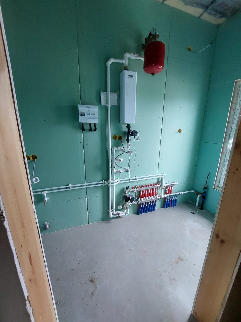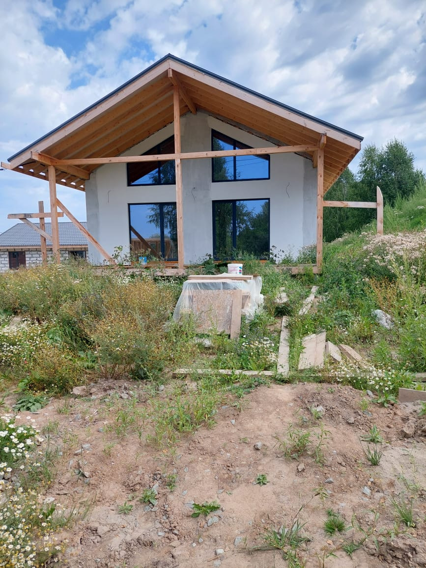 В стоимость входит - септик, полусухая стяжка пола, водяной теплый пол, электрический или газовый котел на выбор, шестикамерные кашированные окна, входная дверь с терморазрывом, базовая разводка сантехники и электрики по дому, фасад под ключ.