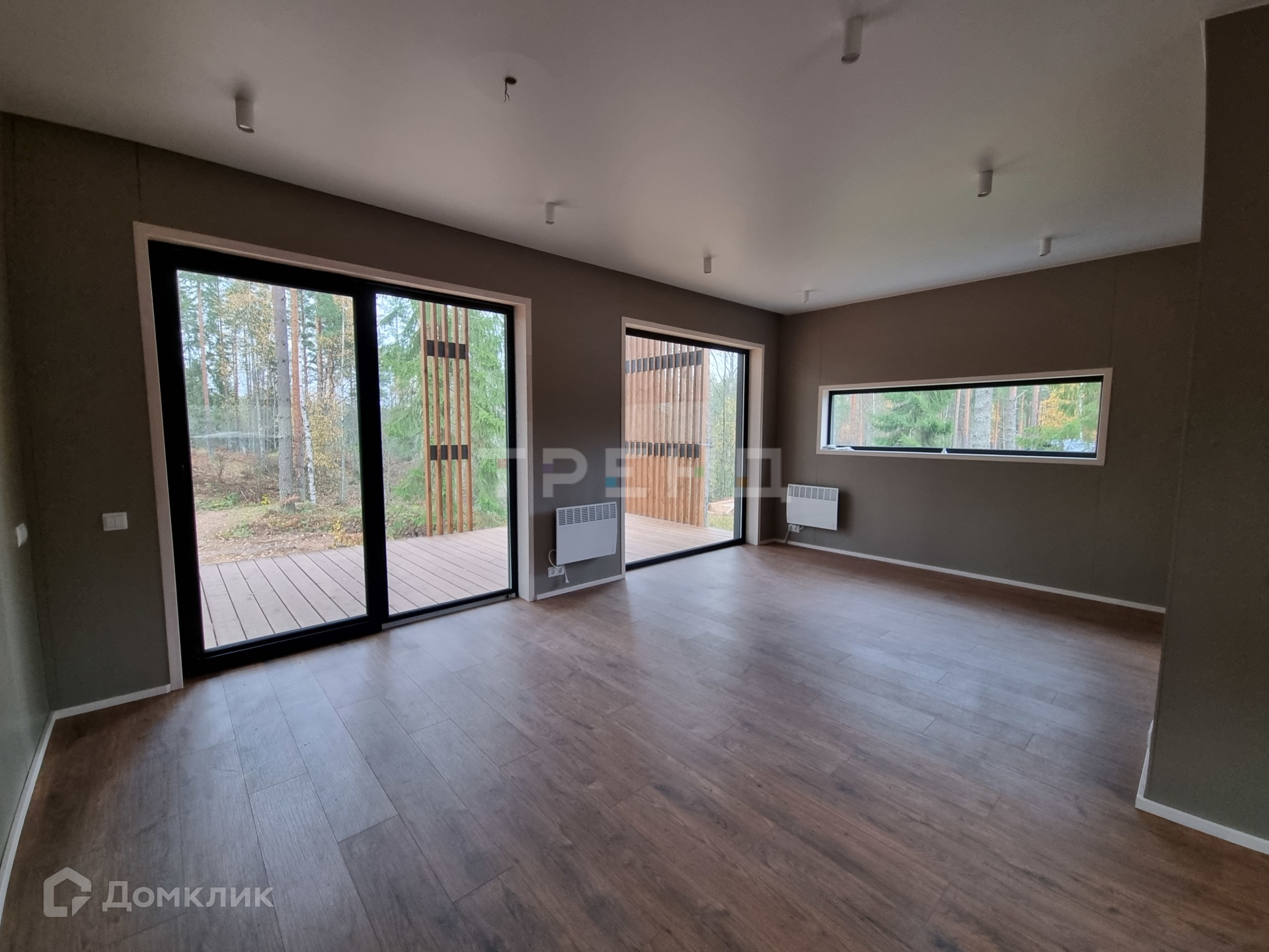 Дом отапливается электрическими конвекторами, смонтированы приточные вентиляционные клапаны, вытяжная вентиляция из зоны кухни и с/у.
