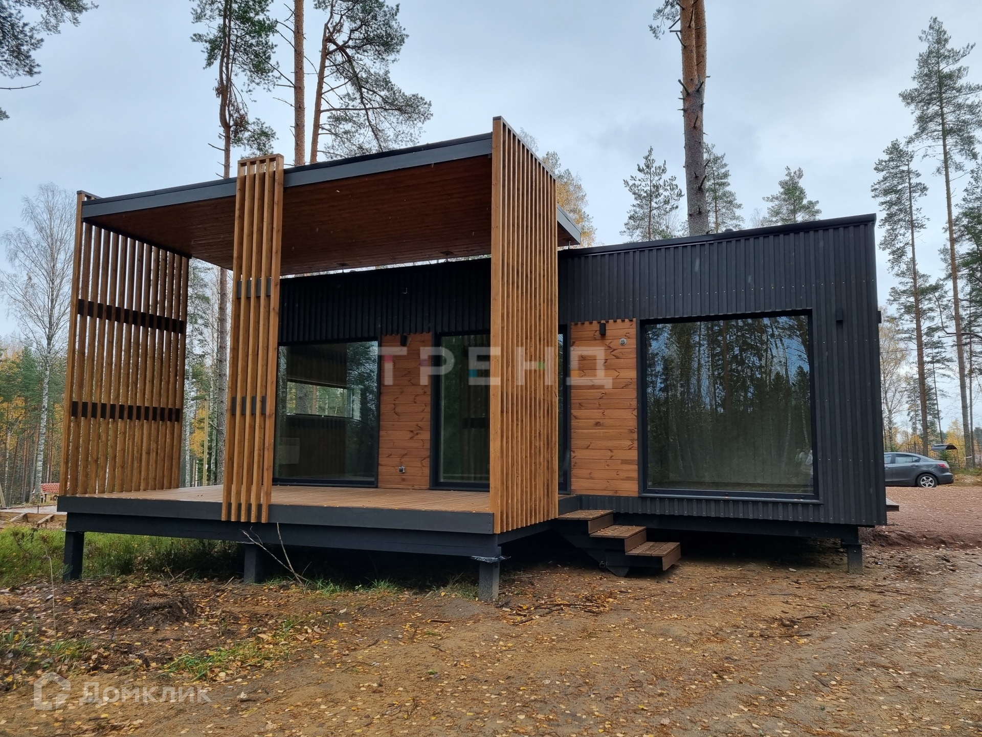 Арт. 38339625. В продаже современный энергоэффективный каркасно-модульный дом. Произведен осенью 2022 года компанией "Кантри Хаус" Смонтирован в КП "Лисичкино" (пос.Стеклянный) на рельефном участке 14,98 соток. Половина участка равнинная, на которой расположен дом, вторая часть рельефная, с возможностью сделать уникальный ландшафтный дизайн и террасирование на склоне. На участке массивные сосны и ели, все лиственные деревья убраны. В данный момент дополнительно идет отсыпка участка песком, чтоб увеличить полезную(равнинную) площадь участка. На участке отсыпана парковочная зона на 4 автомобиля.