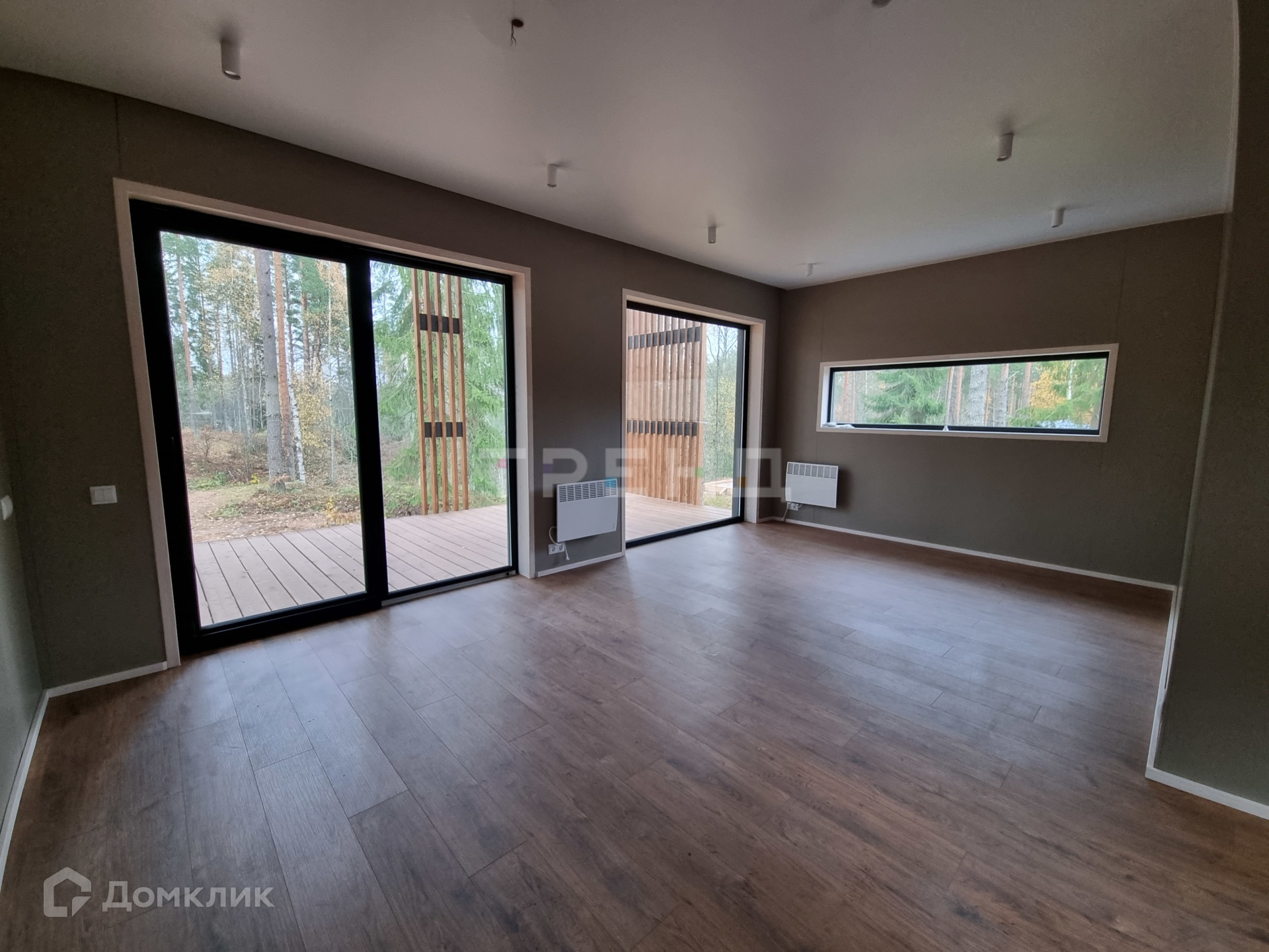 В отделке дома в основном используются МДФ панели, интерьерная доска в четверть, на полу износостойкий ламинат, 33 класс, натяжные потолки.