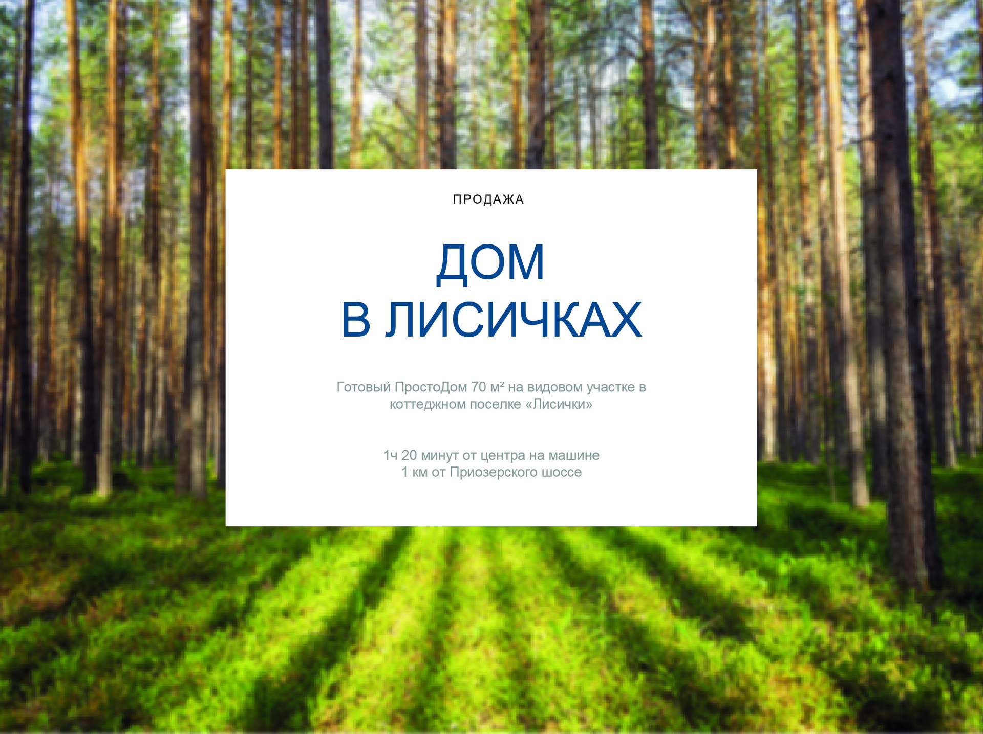 1ч 20 минут от центра на машине, 1 км от Приозерского шоссе.