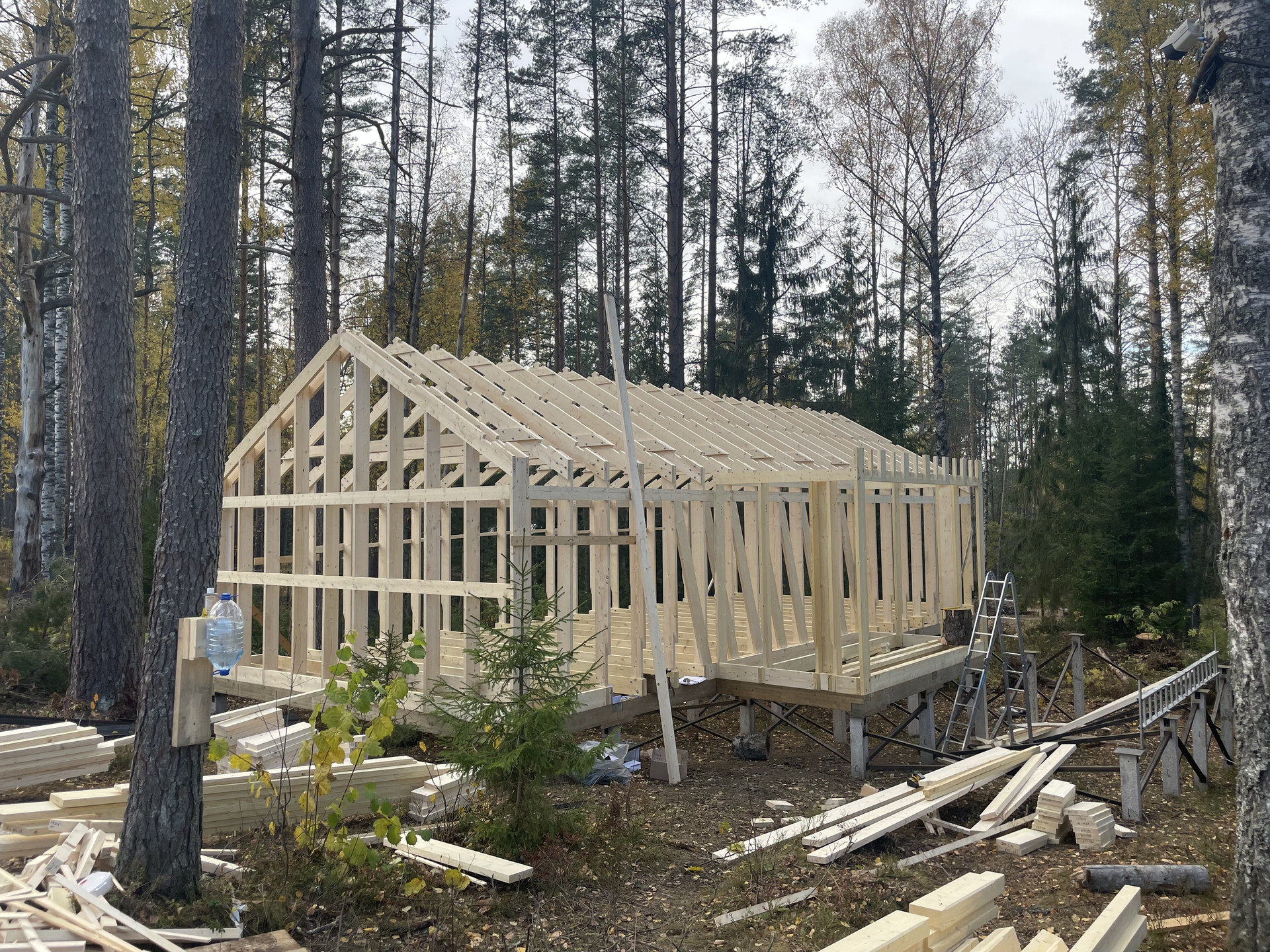 Фундамент: бетонные сваи. Каркас компании ПростоДом производен из сухой строганой доски камерной сушки. В основании ростверк из клееного бруса, обработанный невымываемым антисептиком.