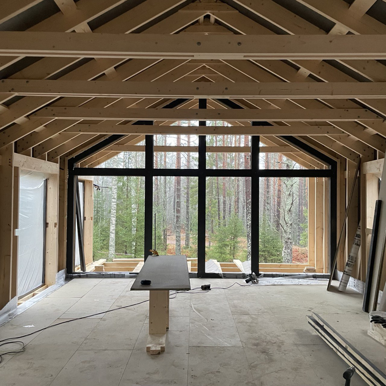 Внутренняя отделка: имитация бруса, ламинат. На этом этапе при необходимости можем укомплектовать дом теплым полом или продать без отделки.