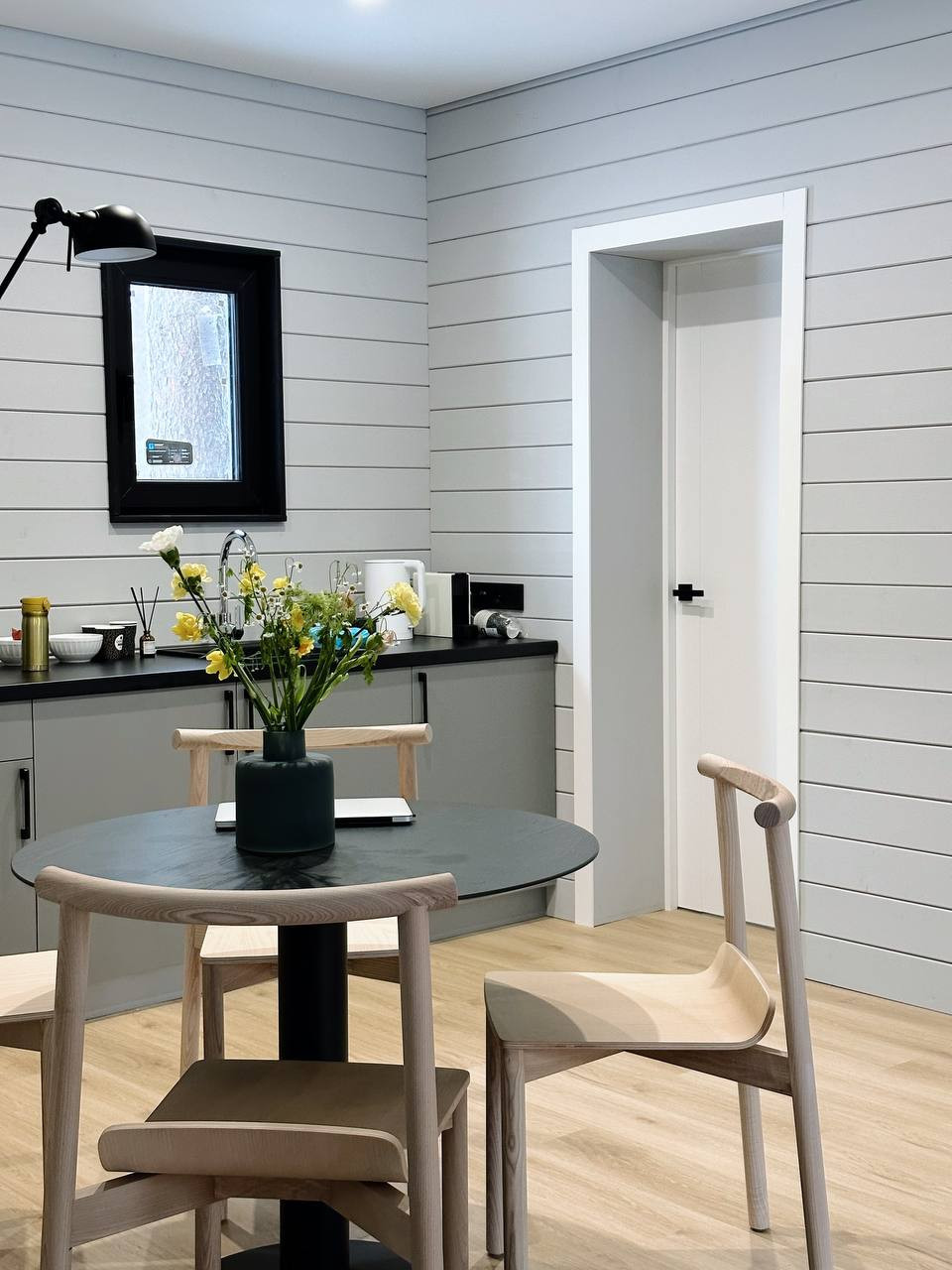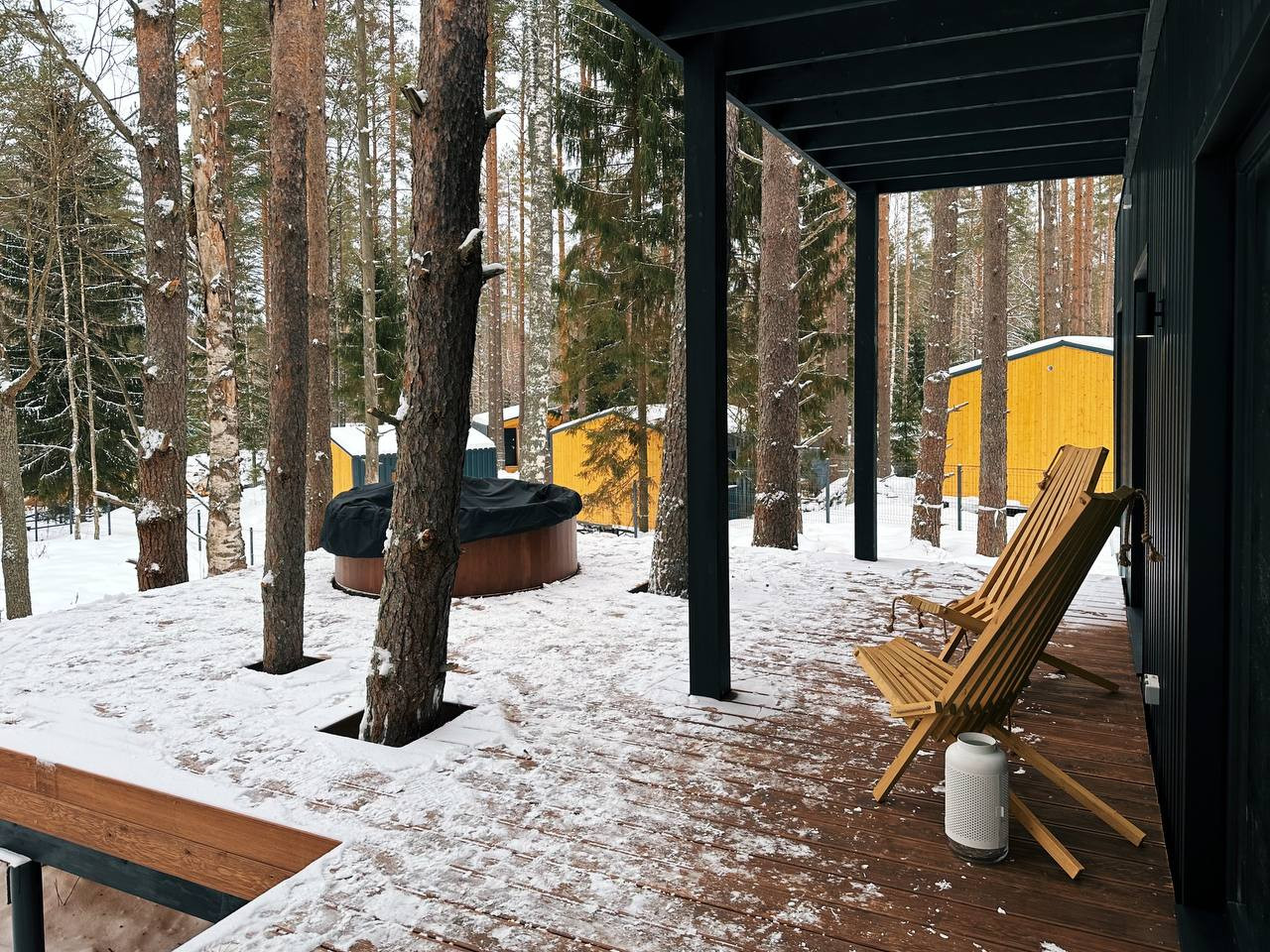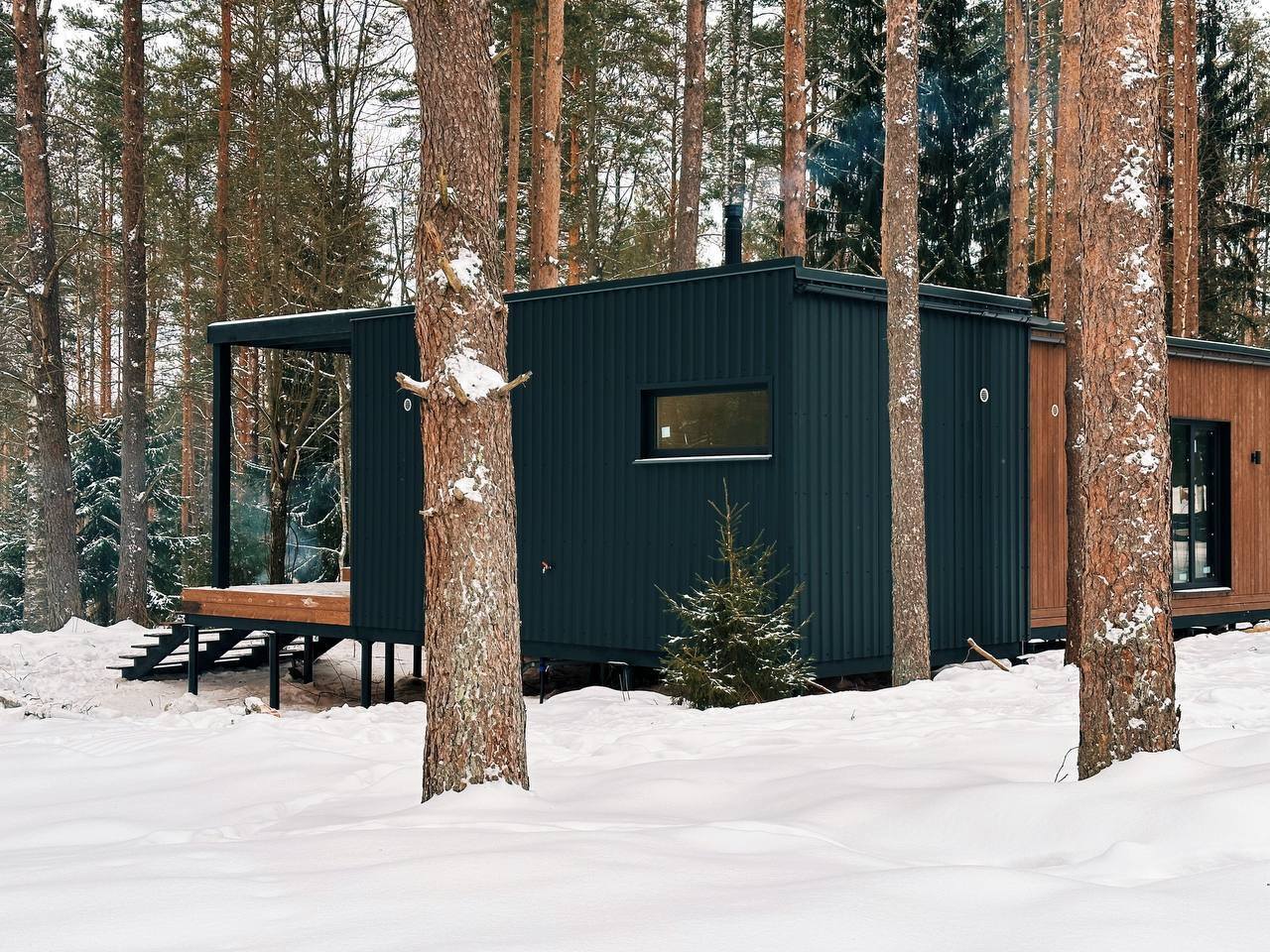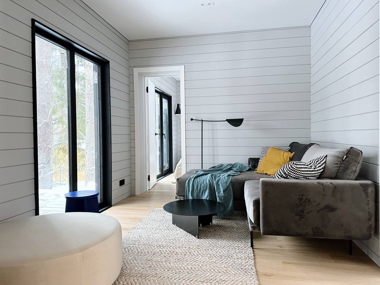 ✅ Дом каркасный модульный с стиле Барн, общая площадь 122 кв м, жилая 84 м. Большая терраса под навесом, очень просторная кухня-гостиная, 2 раздельных спальни, кабинет, встроенная сауна. Полноценный с/у со всей сантехникой и бойлером на 100 л, на террасе стоит купель из лиственницы с подогревом.
