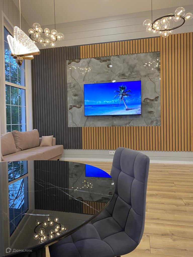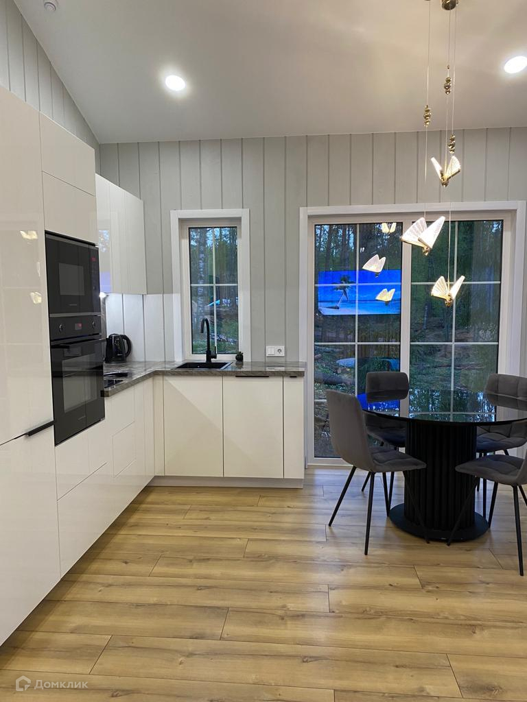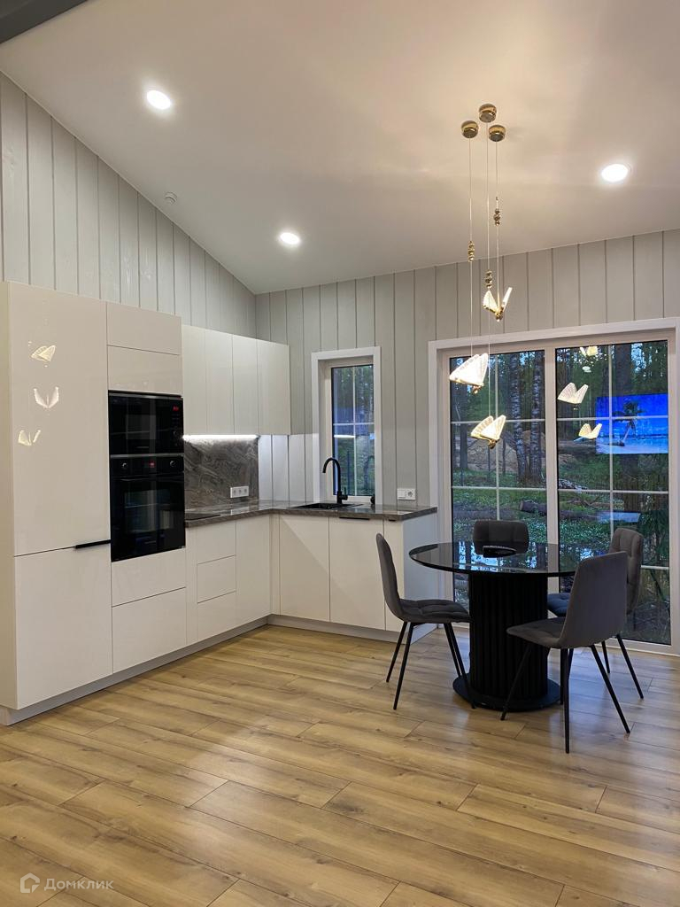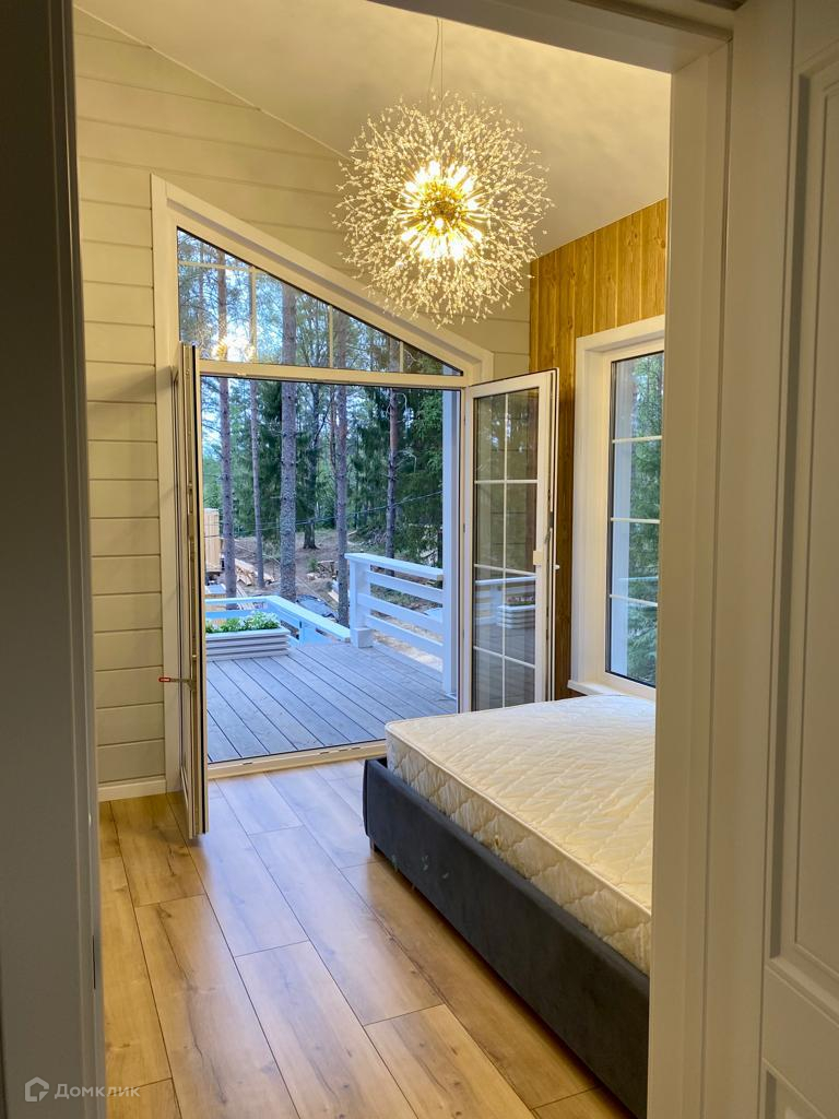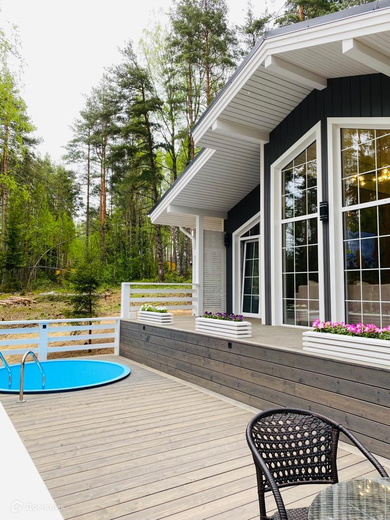 Дом включает в себя: двухуровневую террасу с бассейном и освещением, кухню-гостинную, 3 раздельных комнаты, с/у, сауну, лофт-пространство и бойлерную. Панорамные окна с выходом на террасу.