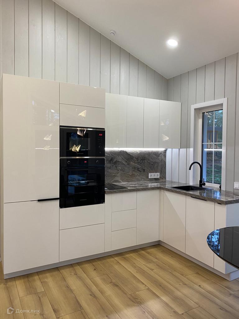 Кухонный гарнитур со всей встроенной техникой немецкого бренда, итальянская сантехника, дизайнерский интерьер и освещение.