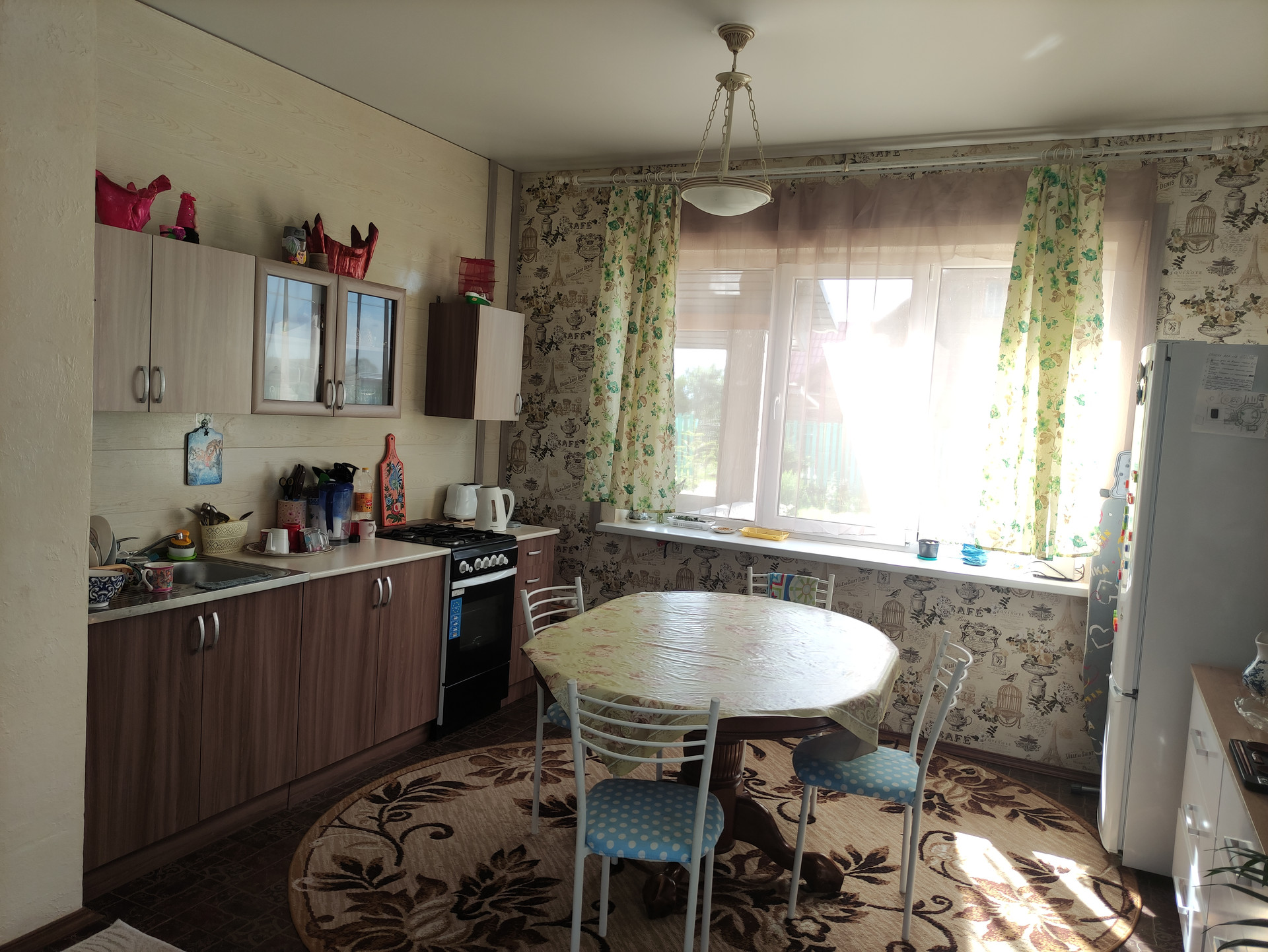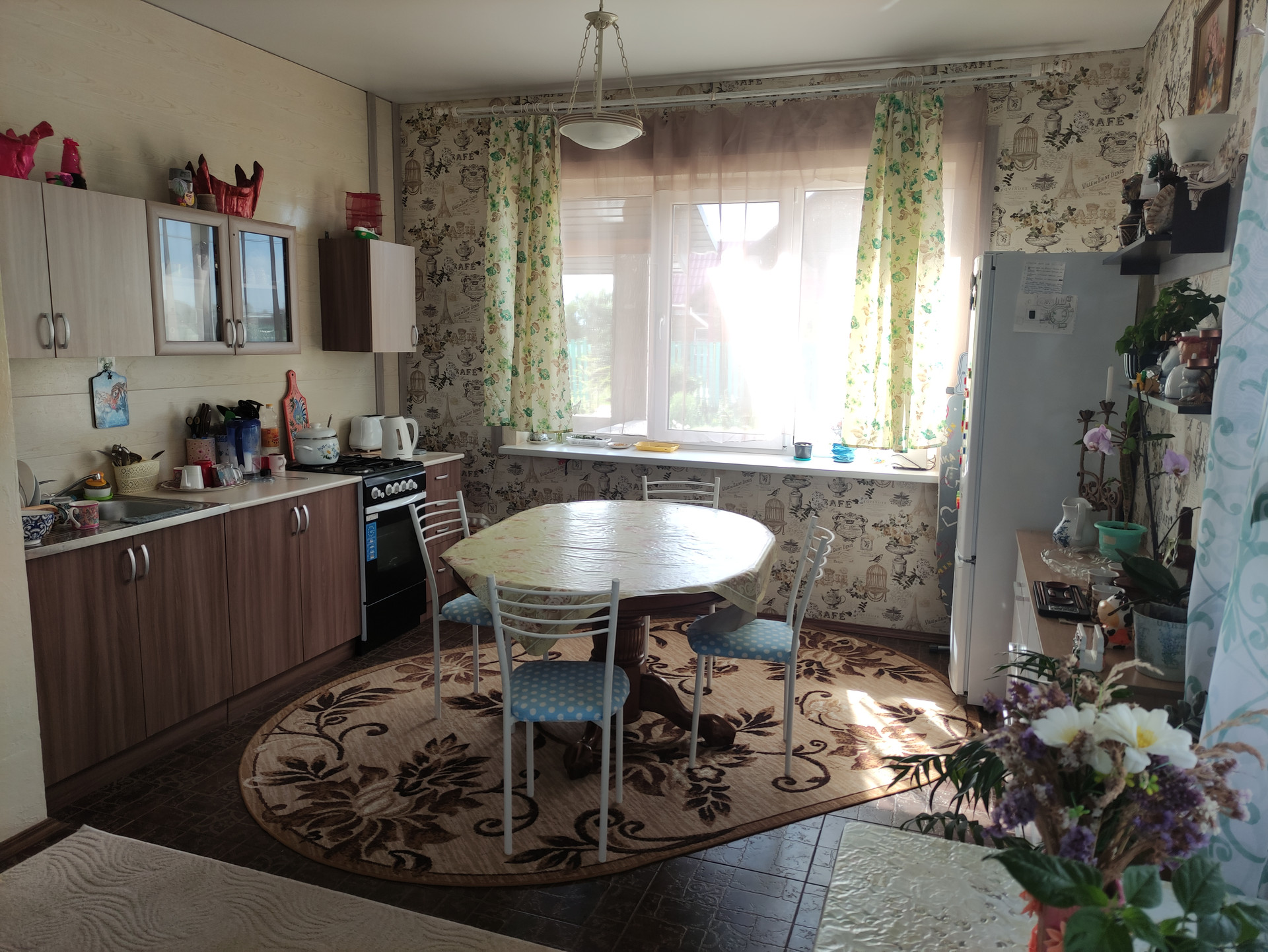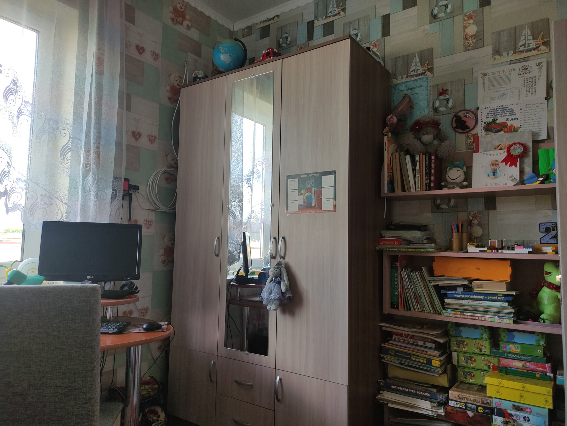 4 комнаты: взрослая спальня, детская, кабинет с домашним кинотеатром (проектор), кухня-гостиная (30 м2).