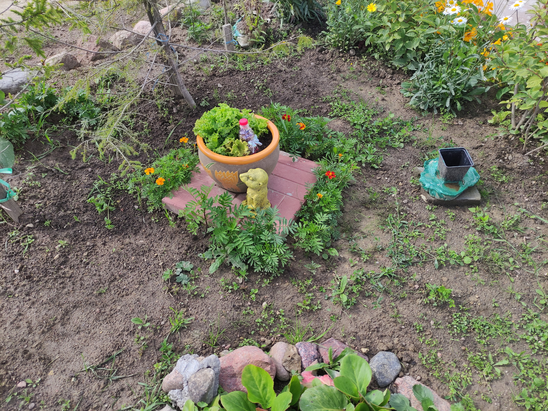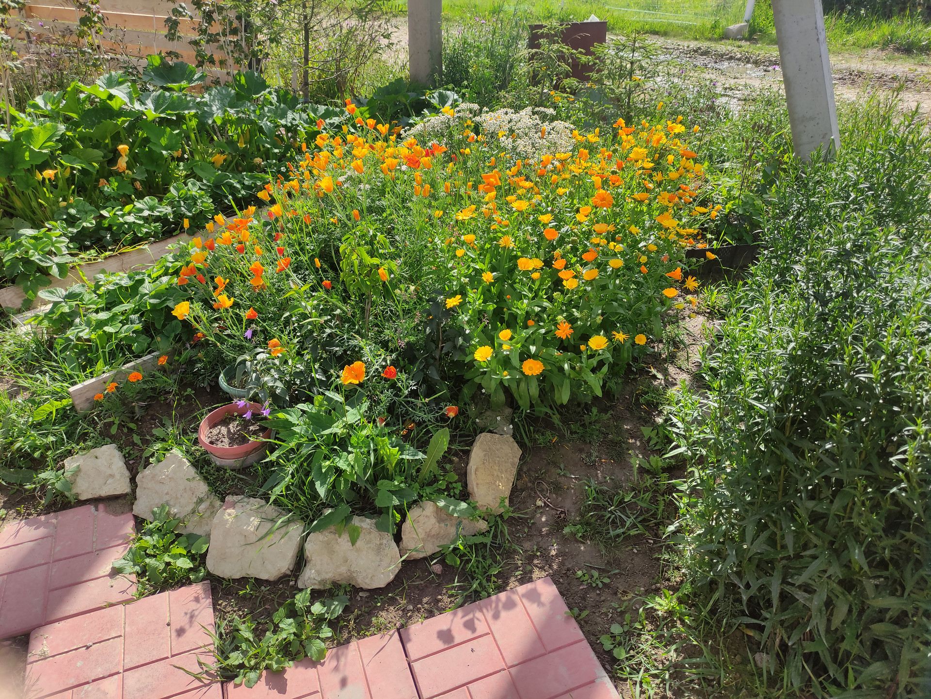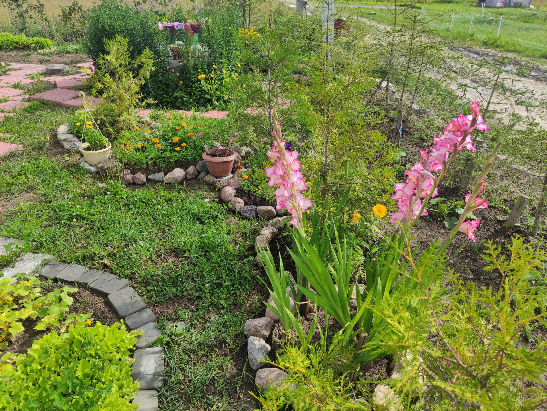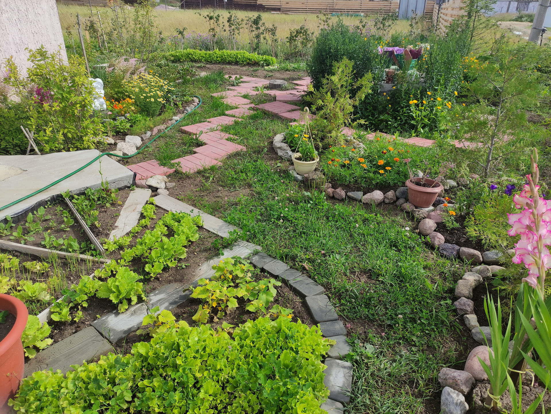 Половина участка облагорожена (ландшафтный дизайн + арт-бетон), половина в процессе. На участке имеется водоем диаметром 14 метров с начатым возведением фонтана (отдельно можно обсудить подряд на доведение всех начинаний до ума: бассейн, фонтан + ручьи, площадка для барбекю и дорожки, достройка пристройки, остальное оформление участка)