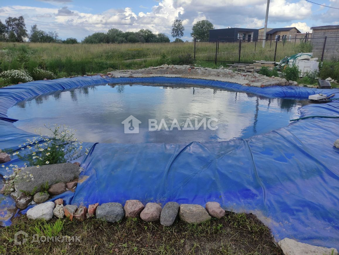 Земельный участок частично обустроен (ландшафтный дизайн + арт-бетон), половина в процессе. На участке имеется водоем диаметром 14 метров с начатым возведением фонтана.