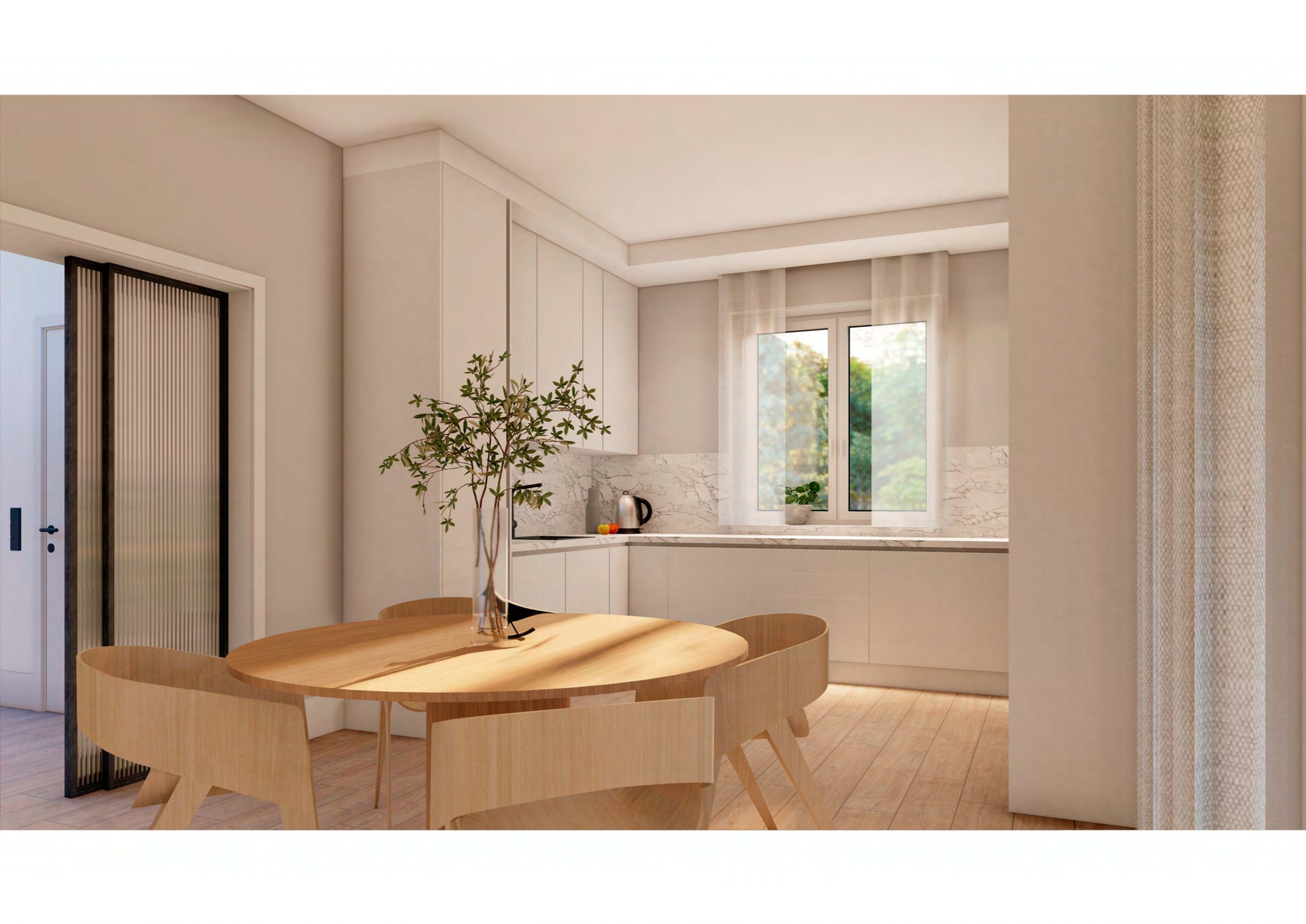 В доме большая кухня-гостиная 32,2 кв.м с выходом на просторную террасу 26,6 кв.м.
