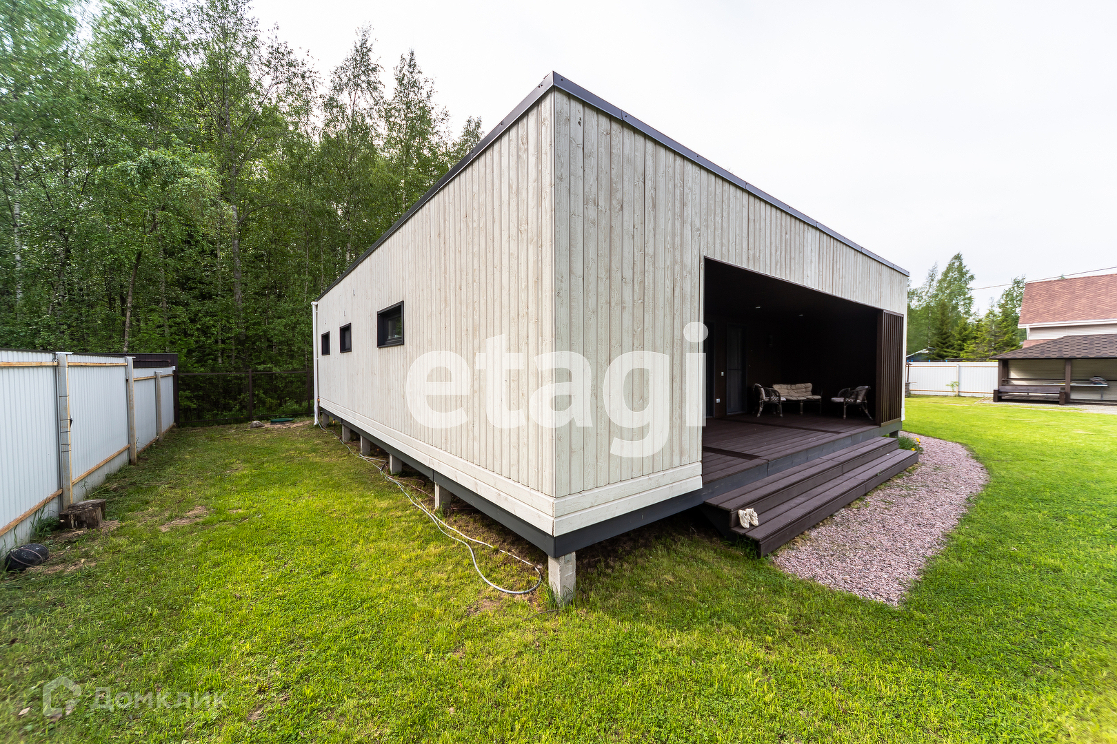 Основной дом на железно-бетонных сваях был построен из премиальных материалов в 2022 году и грамотно спроектирован до мельчайших подробностей, с утеплением пола 400 мм, крыши 350 мм и стен 250 мм.