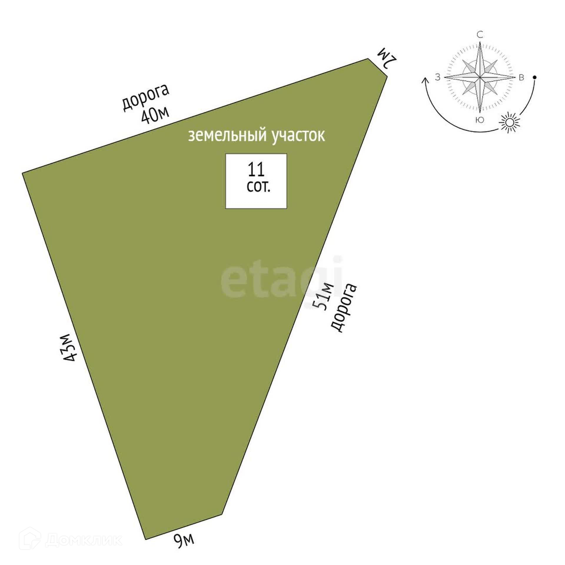 Площадь участка 11 сот.