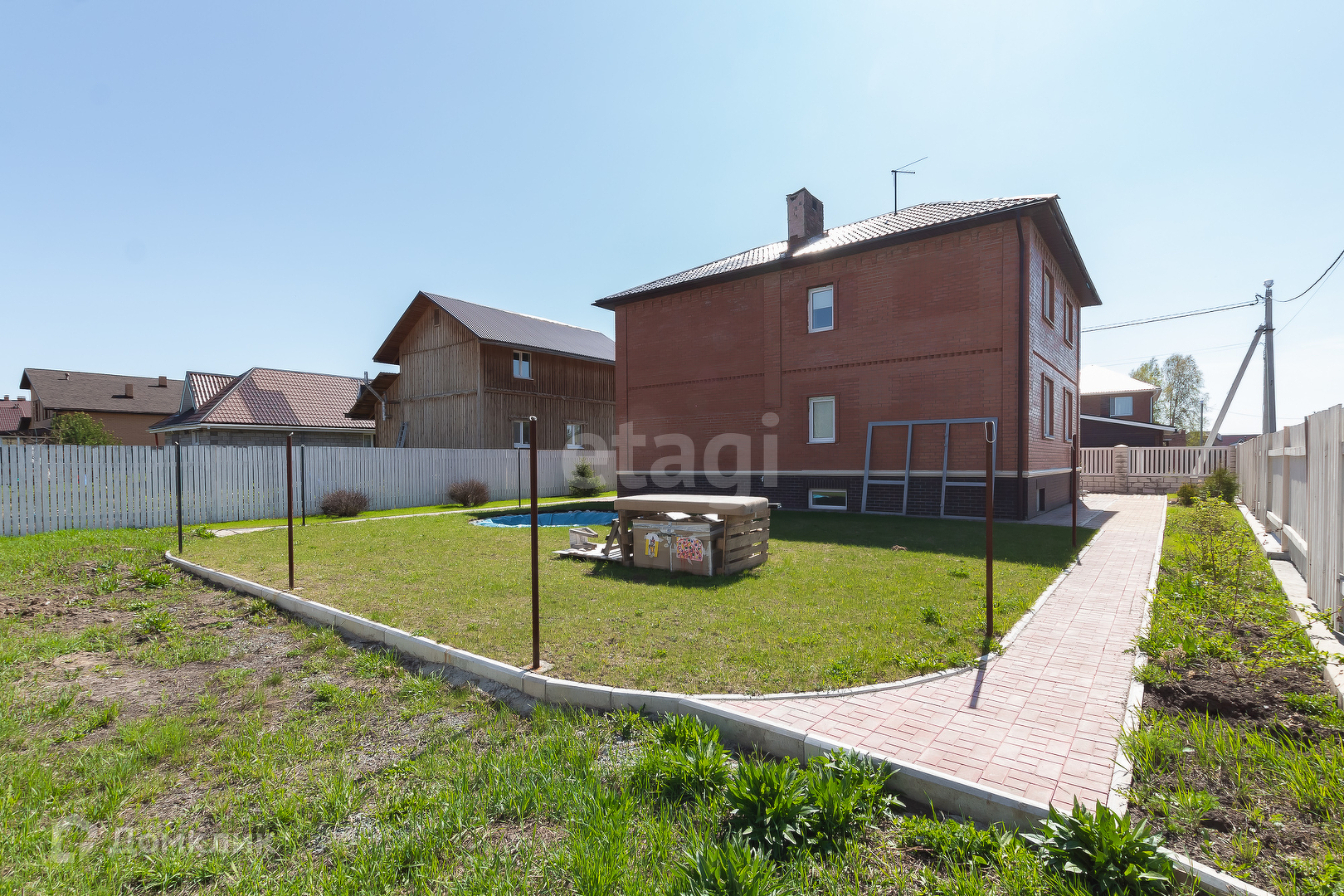 Во дворе бассейн и место для отдыха. Есть место для грядок для любителей огородничества.