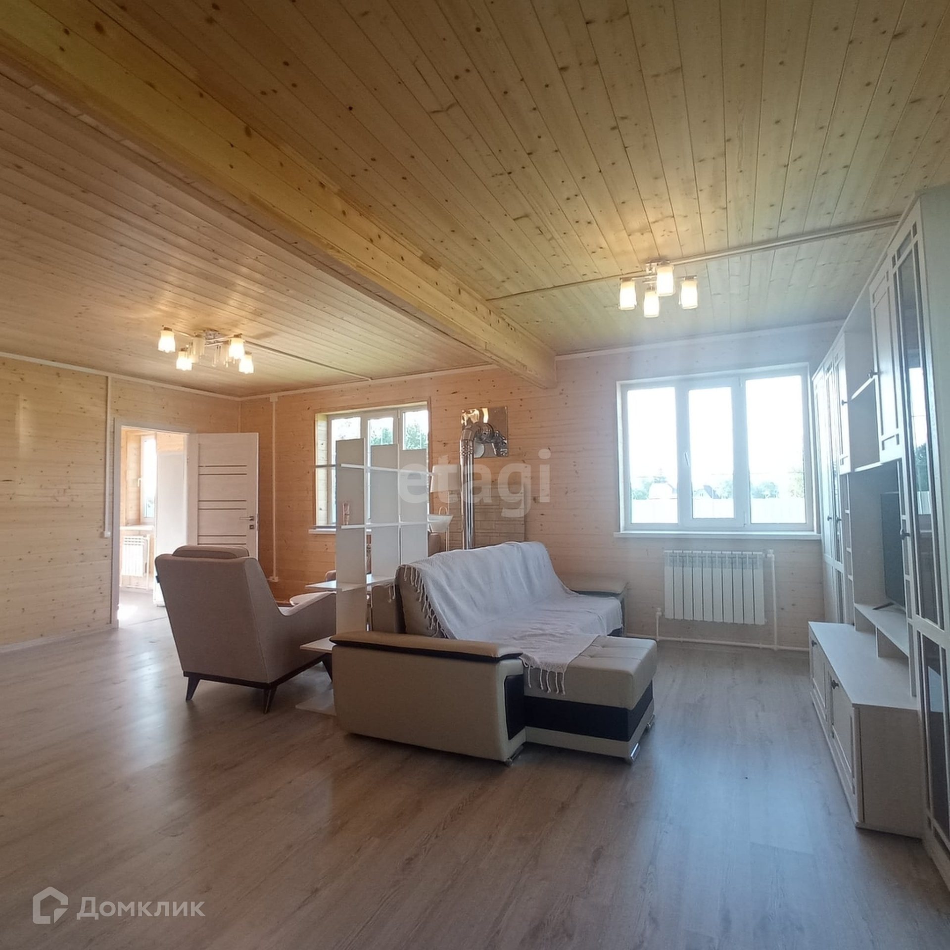 Деревянный дом из бруса. Электричество 15 кВт, канализация - септик, колодец. Есть все удобства. Дом полностью оборудован мебелью и бытовой техникой! Никто не жил!
