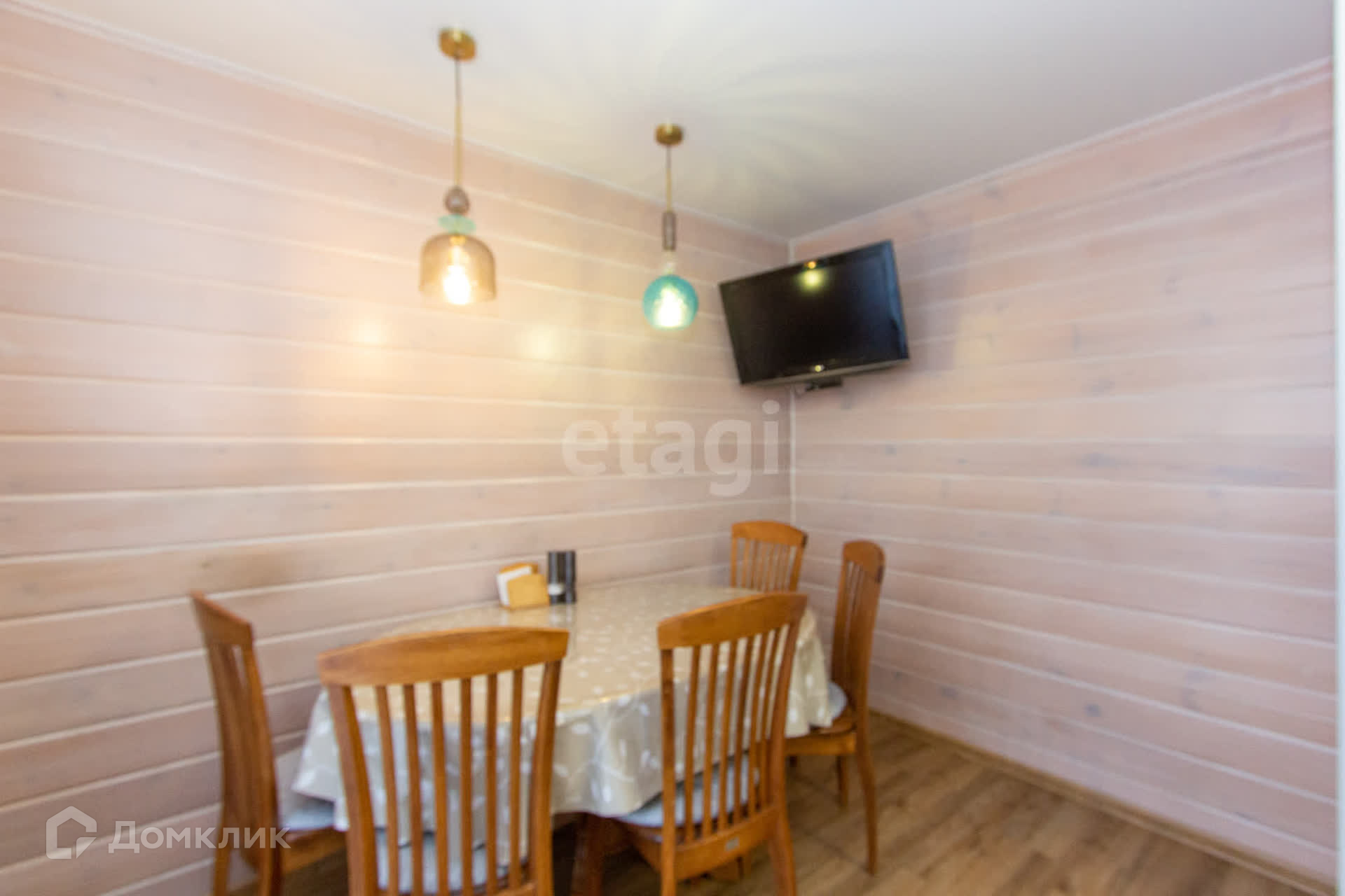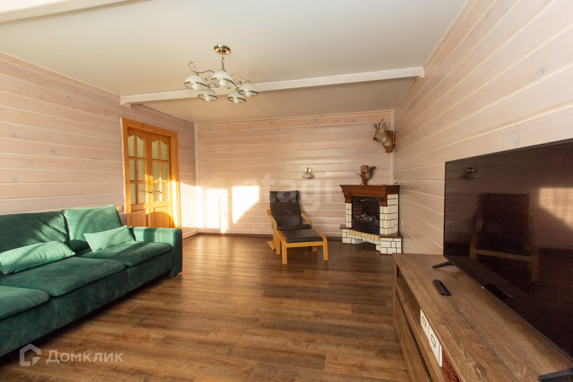 Места хватит для всех членов семьи, отделка выполнена в нейтральных тонах. На первом этаже дерево, на втором этаже - обои.