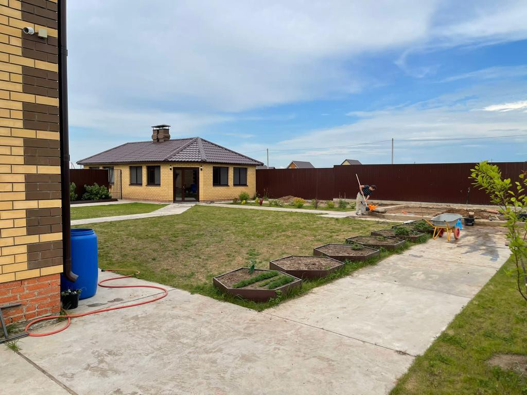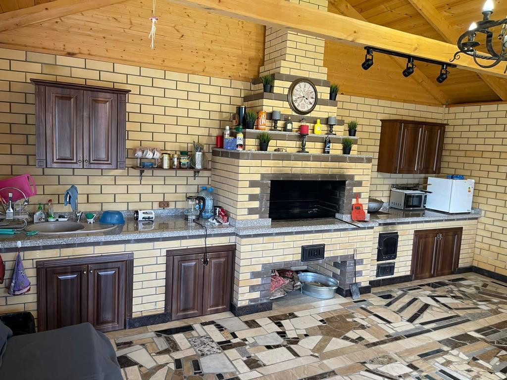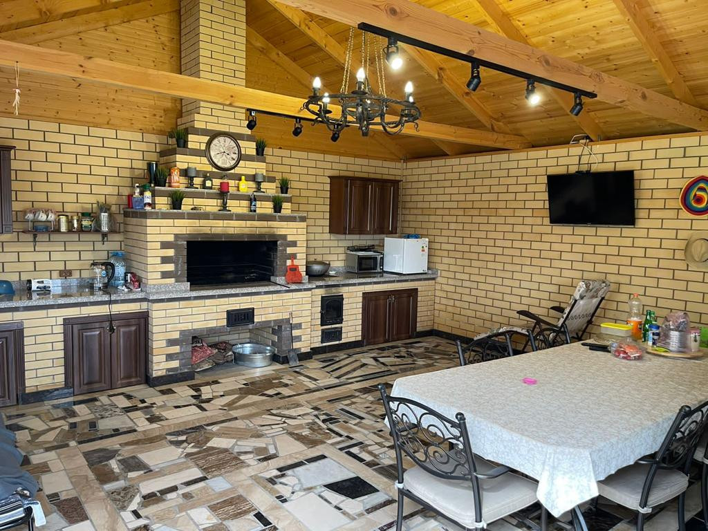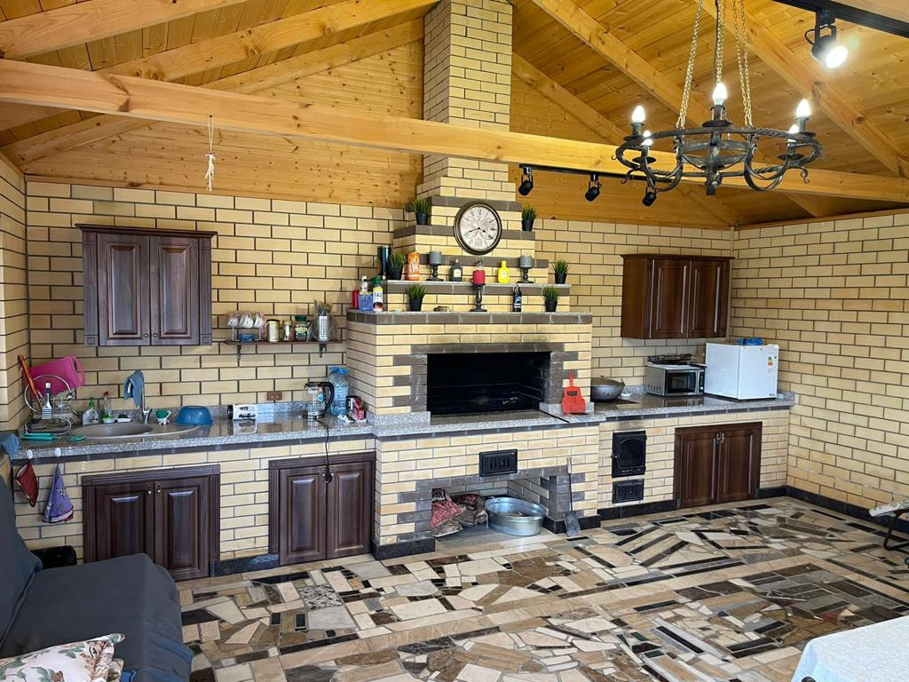 На участке отдельно стоящая кирпичная летняя кухня с большой каменной печью; с зоной барбекю; и очагом под казан. Новая баня с санузлом и хозблоком 6х6 м; в предчистовой отделке.