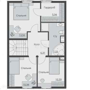 2 этаж: на второй этаж ведет красивая лестница, на этаже расположены 3 спальни и 1 большой холл.