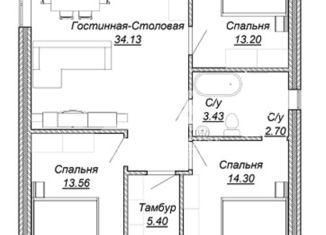Общая площадь: 97.8 м2