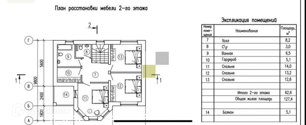 2-й этаж: холл 8 кв.м, санузел раздельный, гардеробная 5 кв.м, 3 просторные спальни одна из них с выходом на балкон.