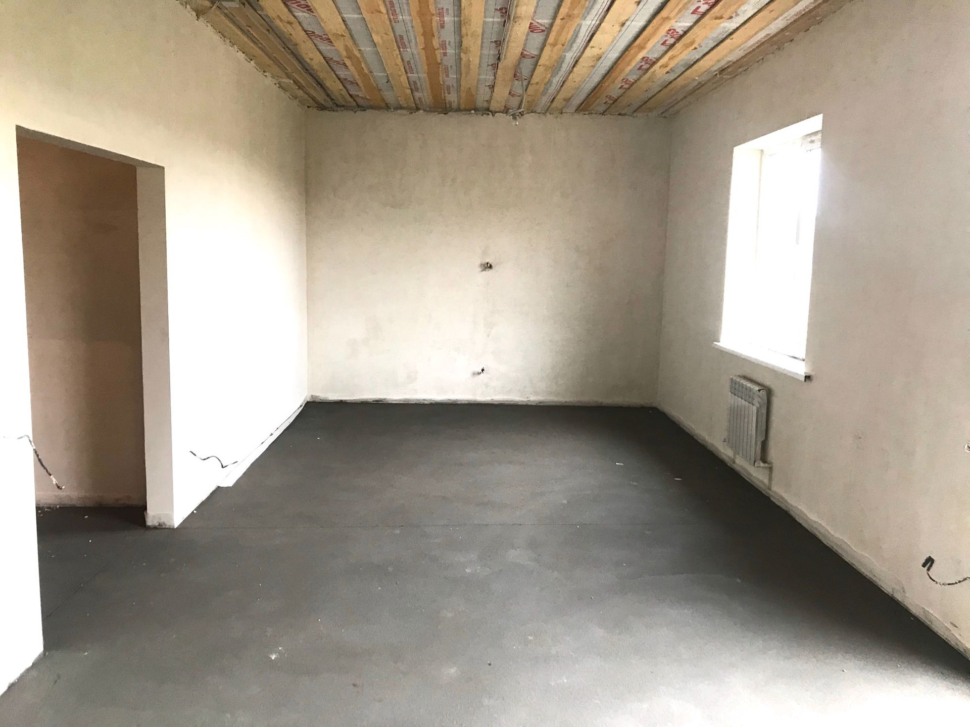 - Стены и откосы оштукатурены финишной гипсовой штукатуркой Knauf.