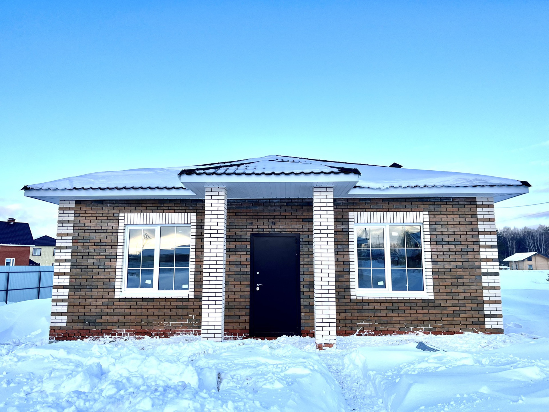 Вашему вниманию предлагается просторный дом 104,4 кв.м. с предчистовой отделкой на участке 6 сот. Участок правильной квадратной формы. Строили из качественных материалов.
