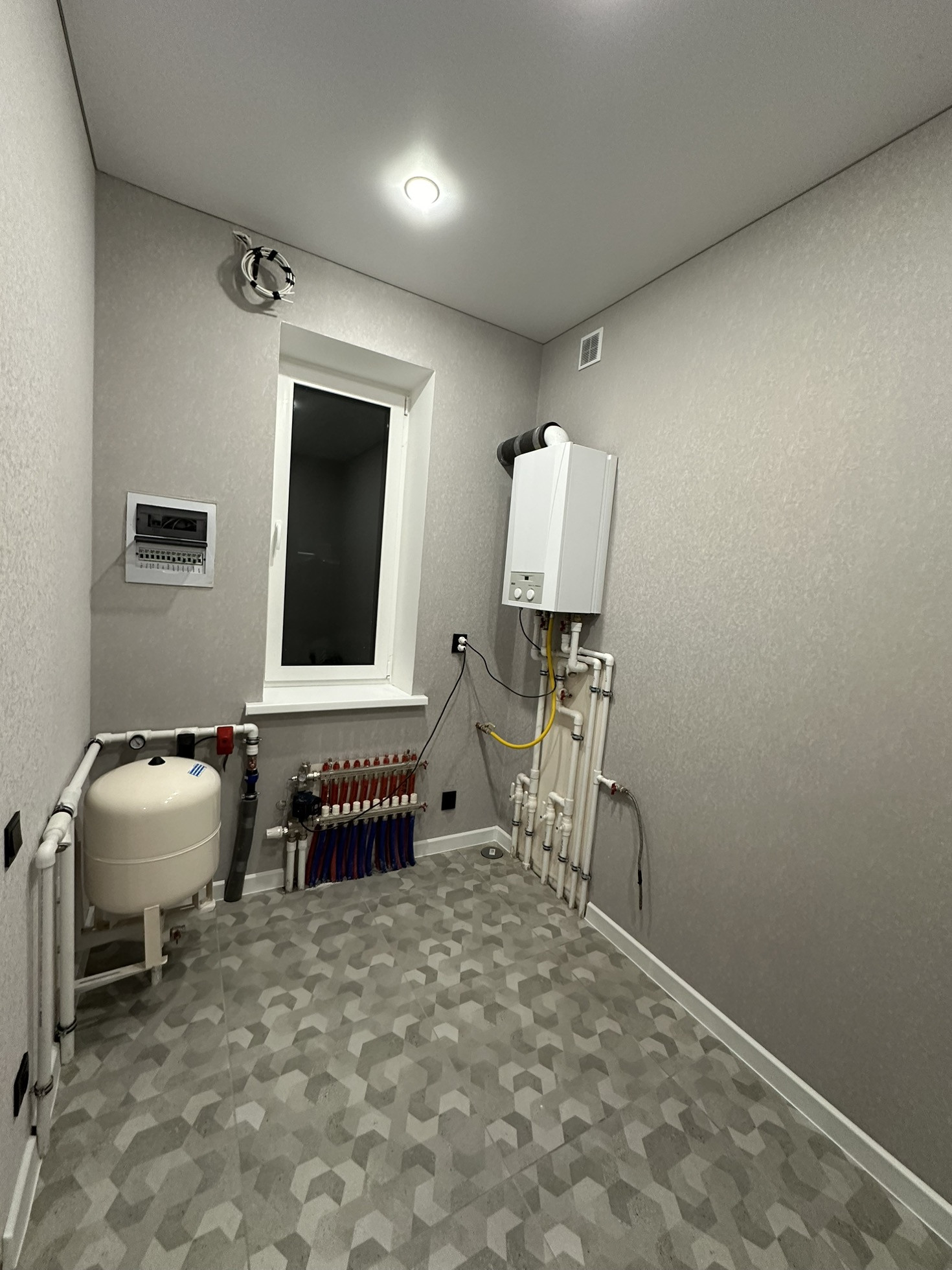Отопление проведено. Тёплые полы абсолютно по всему дому - 10 контуров. Котёл Baxi 24 кВт.