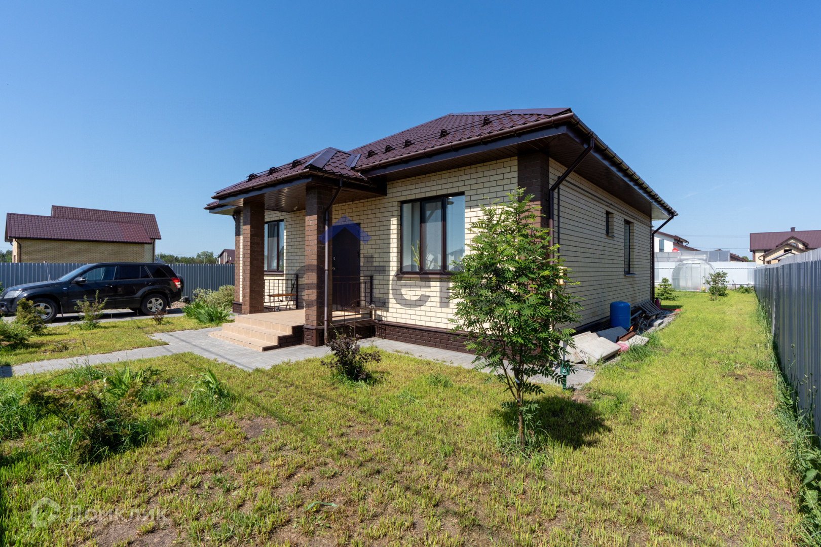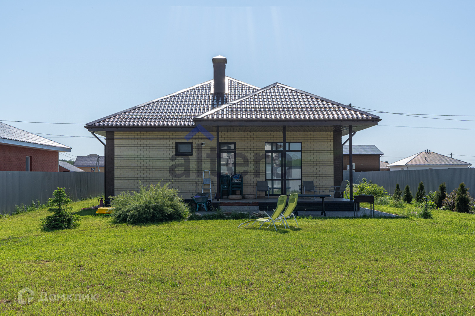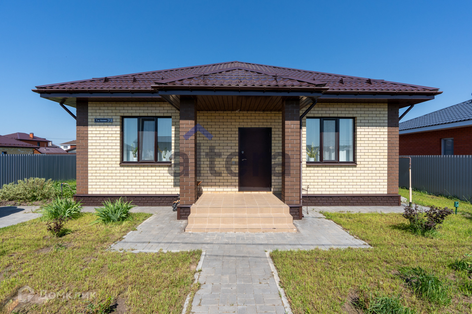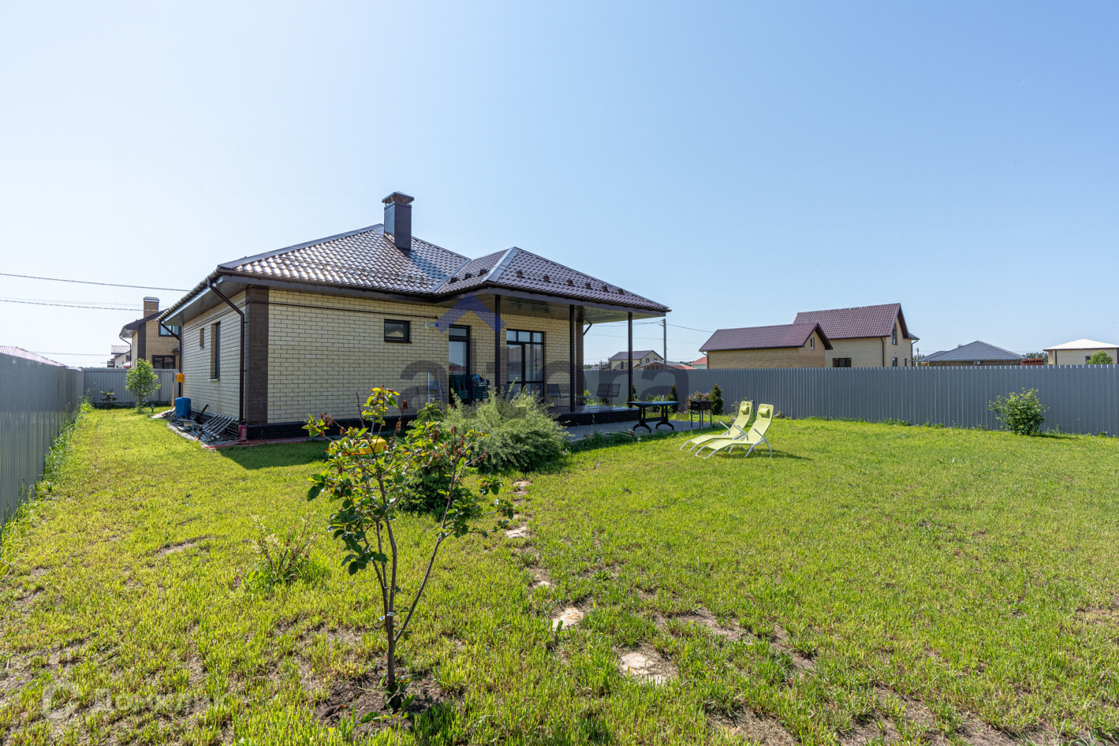 Участок- 7,5 соток, ухоженный с насаждениями, газон, брусчатка по периметру с забором из профнастила,с выкатанными воротами door han, водосточная система, снегозадержатели.