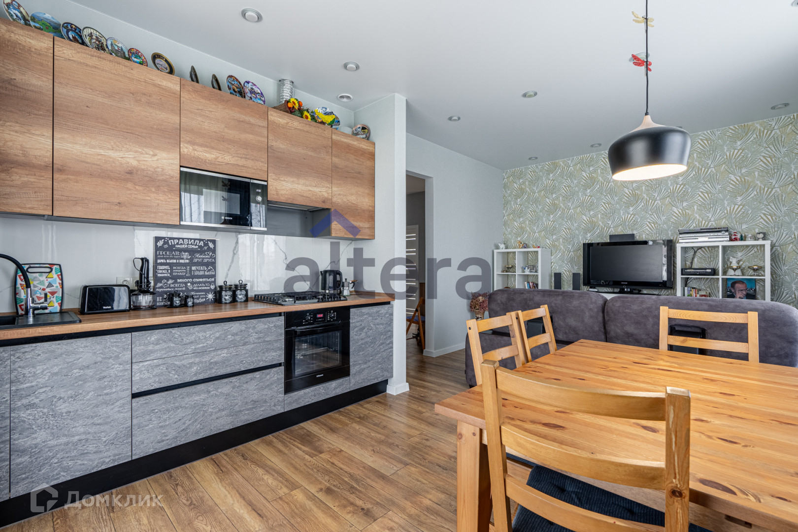 Кухня- гостиная с качественной встроенной техникой фирмы Bosh , духовой шкаф, газовая панель! Стиральная машина, все остается