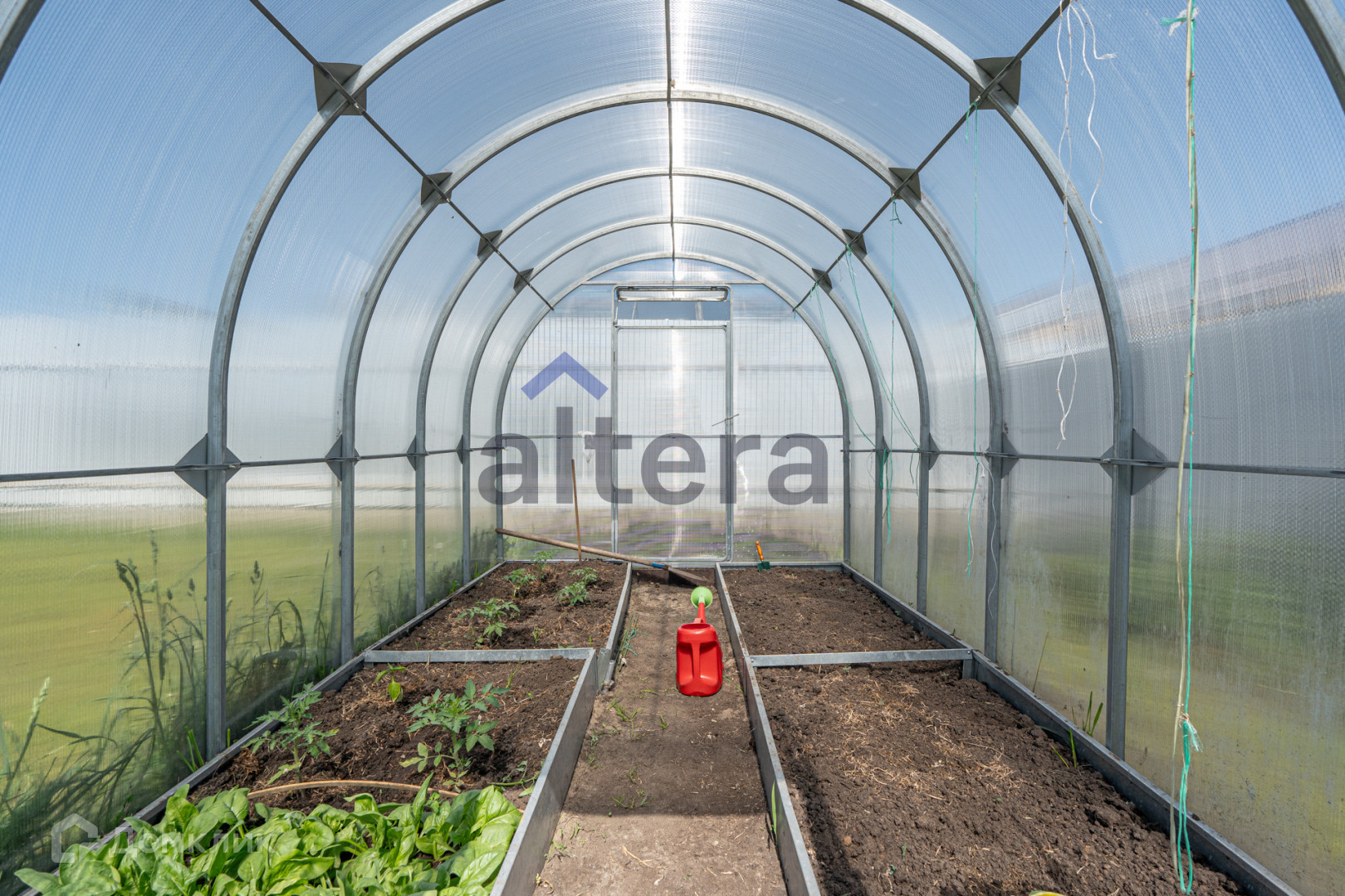 На участке теплица ухоженная размером 3*4 из поликарбоната