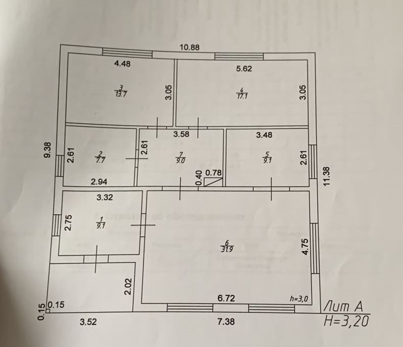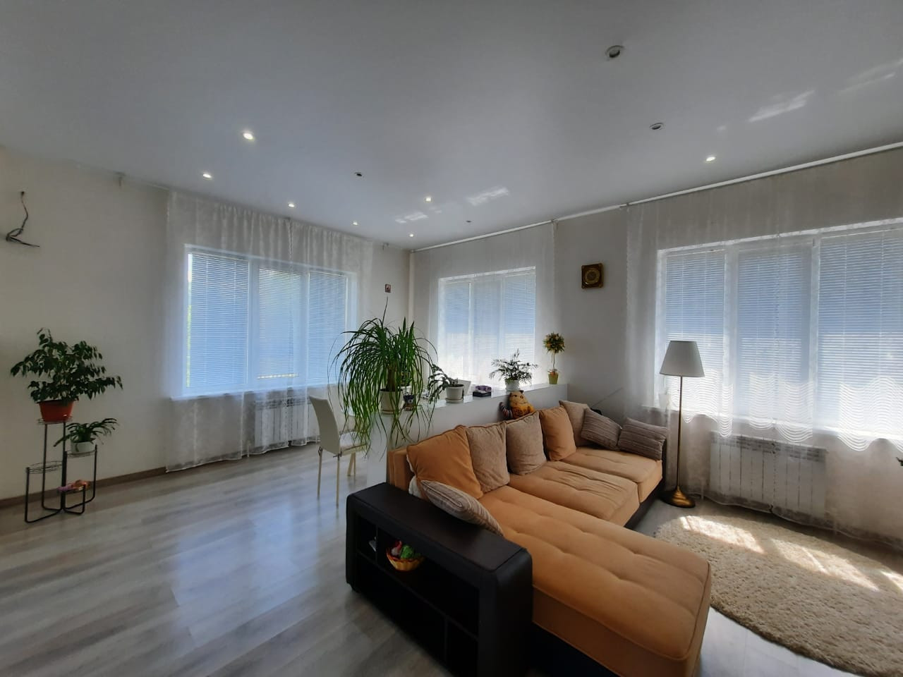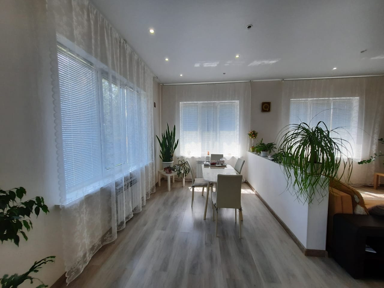 Очень светлый, теплый и уютный, высота потолков 3,2 м, большие окна, за счет чего в доме много света!