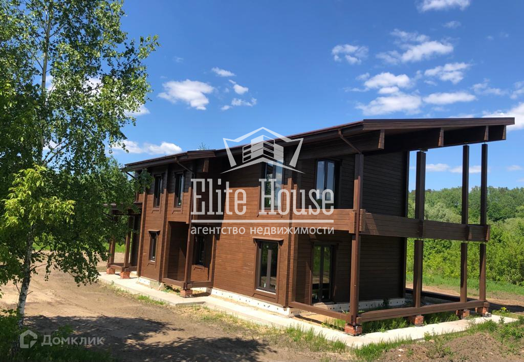 Дом построен в 2022 году, на ленточном фундаменте. Стены из бруса.   Крыша из мягкой гибкой черепицы (не шумит при дожде) с утеплением в 200мм.  Дом двухэтажный, заведены газ и электричество. Вода от скважины или колодца, канализация устраивается при помощи септика.
