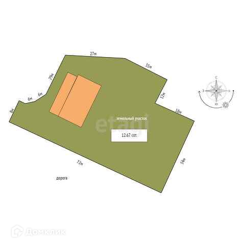 Площадь участка 12.67 сот.