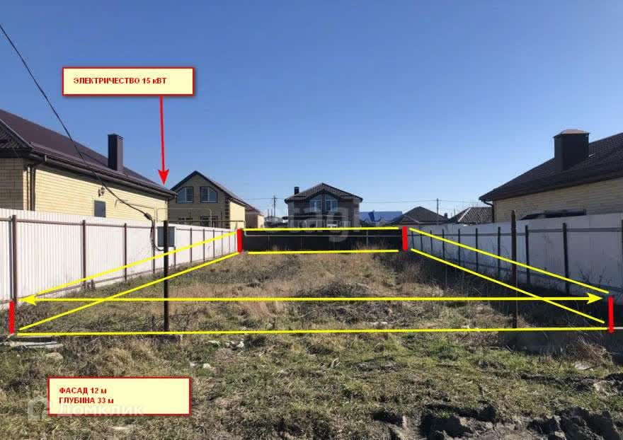 Подключено электричество 15кВт. Газ и центральный водопровод по меже. Забор с 3-х сторон.